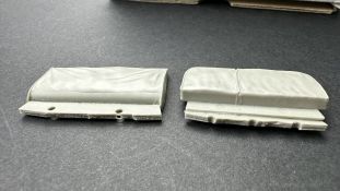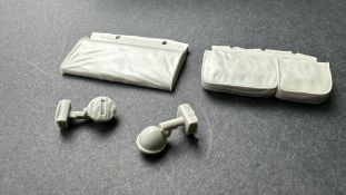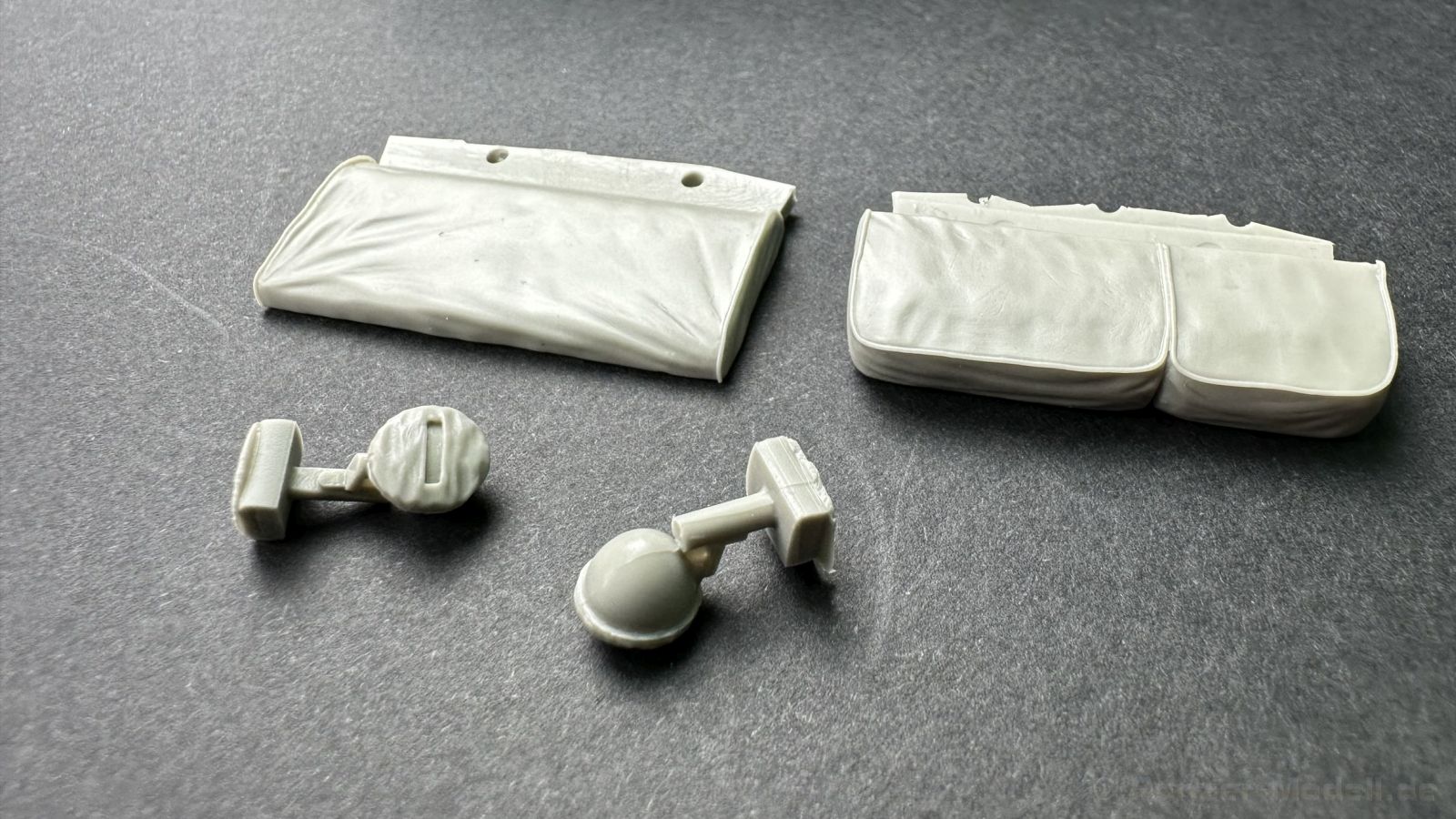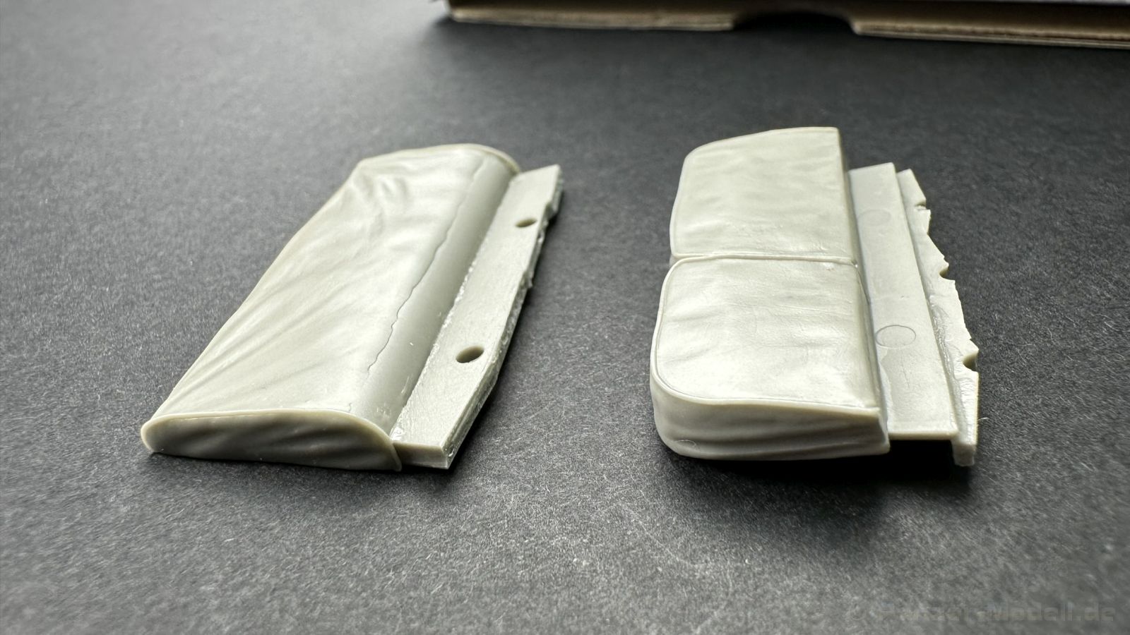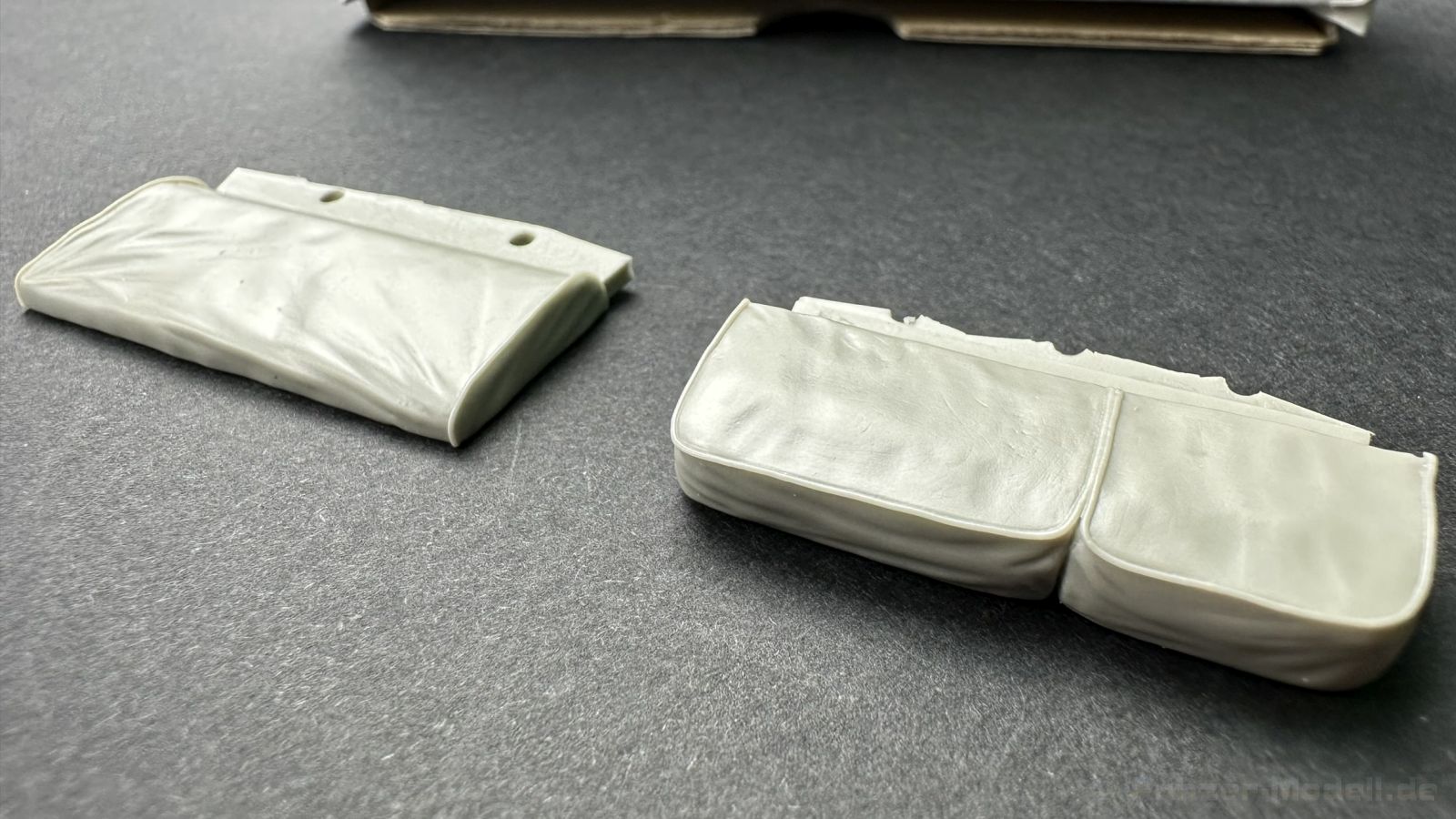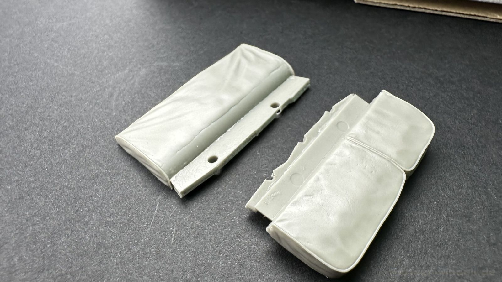 heute habe ich Resinzubehör für euch zum Vorstellen aus dem Hause Pimp my Miniatures Hier finden wir ein im herkömmlichen Stil hergestellte Resinzubehörteile vor, also ganz normaler Resinguss. Für einen Opel Blitz eine neue Sitzbank, die wesentlich bessere Details aufweist als das von Tamiya, dazu bekommen wir noch 2 Scheinwerfer die über eine Tarnabdeckung verfügen. Die Bauteile kommen ohne Lufteinschlüsse daher, leider hat der eine Scheinwerfer einen minimalen Versatz, der aber mit ebenfalls minimalem Aufwand versäubert werden kann, durch den exakten Guss sollte das Bauteil die originalen Bauteile, ich vermute Tamiya, perfekt ersetzen da auch auf die bei Kunststoffteilen üblichen Klebestellen geachtet worden ist. Lediglich die Angüsse müssen noch mit einer scharfen Resinsäge entfernt werden. Ich habe selten so ein akkurat und mit so vielen Details versehene Resinteile gesehen – Top!