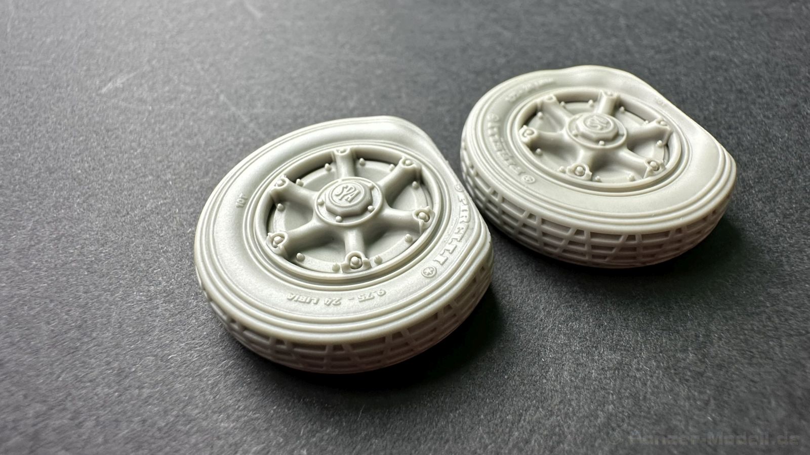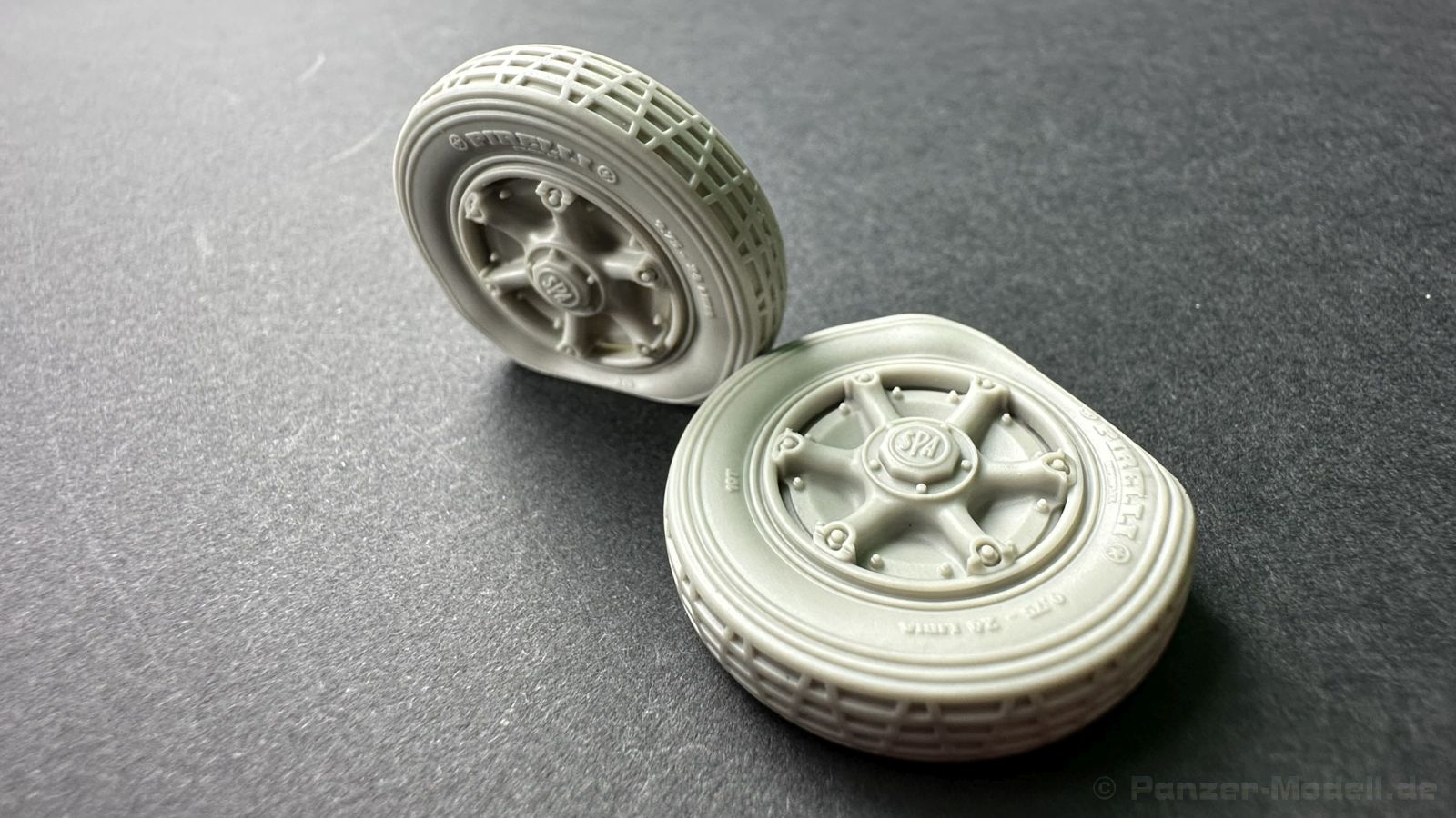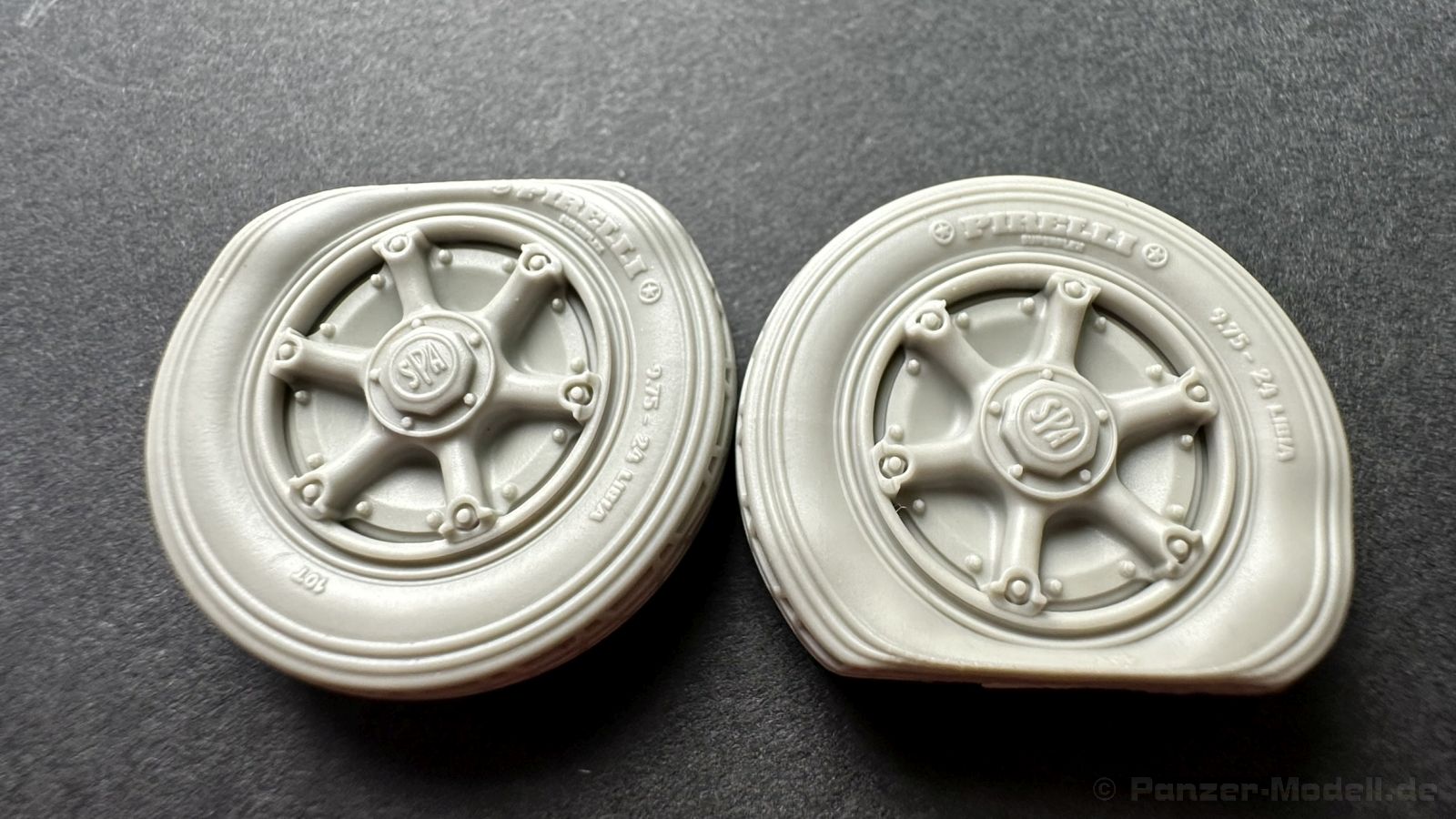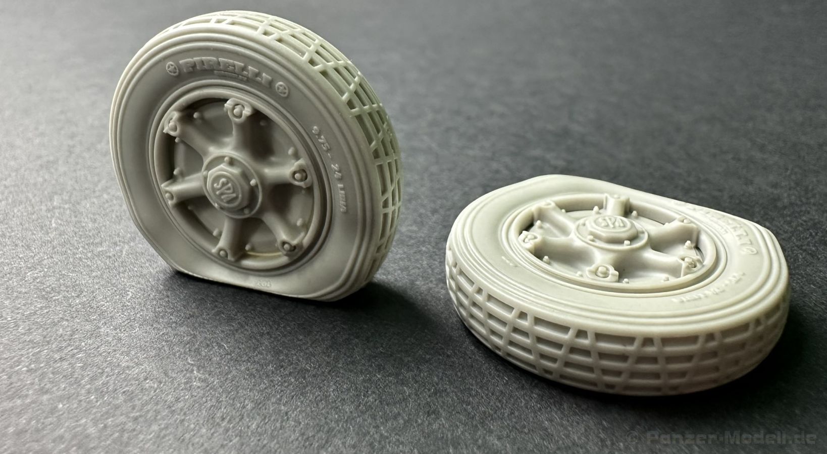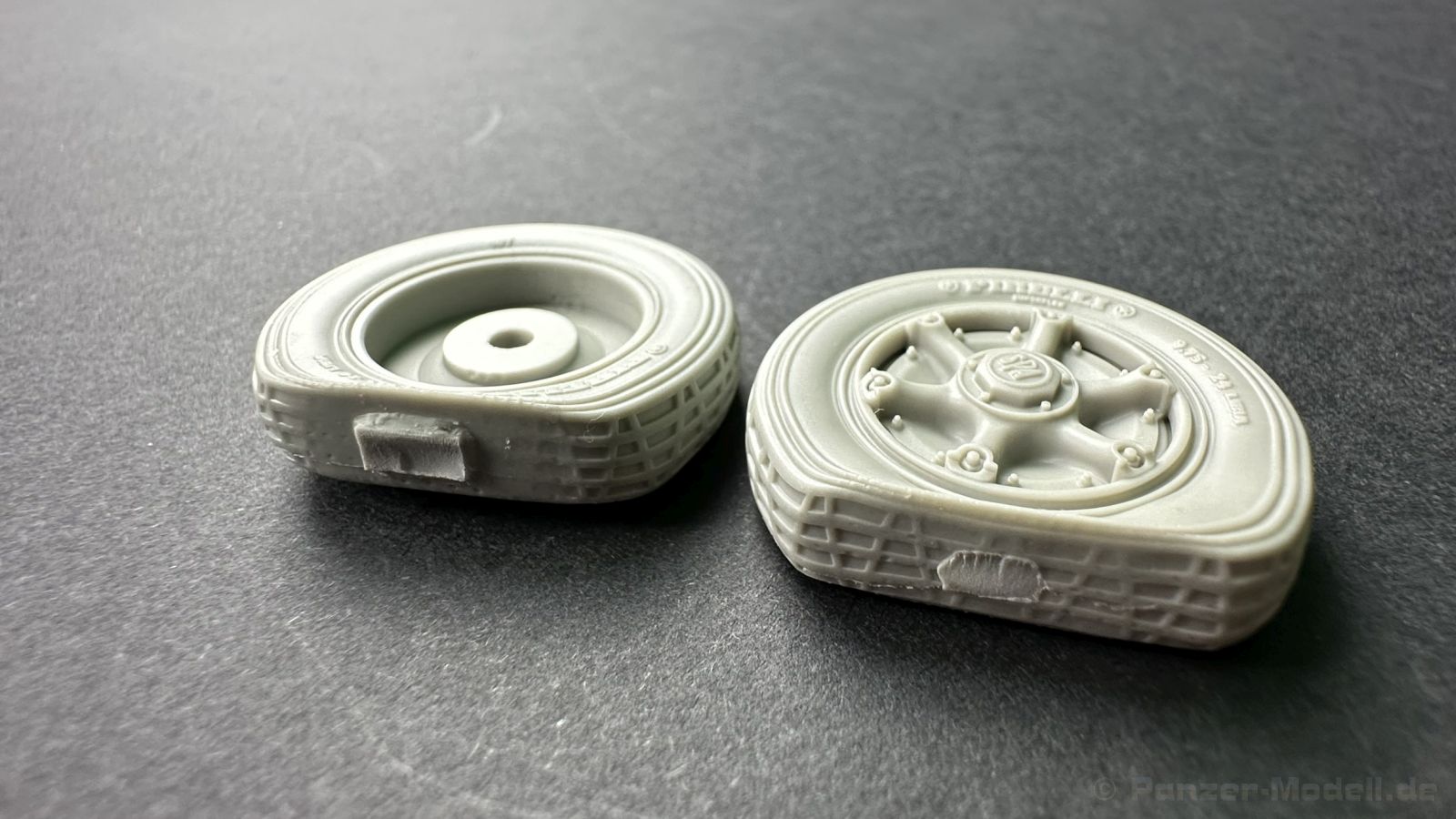 Heute habe ich Resinzubehör für euch zum Vorstellen aus dem Hause Pimp my Miniatures - ein Reifen Set mit insgesamt 2 platten Reifen, passend für den ital Radpanzer AB41 und 43 Von der Detaillierung sind die Reifen exakt so top dargestellt wie die heilen Reifen, geben aber das Erscheinungsbild eines bzw. 2 defekten Reifen perfekt wieder. Hier haben wir ein Set, das eine willkommen Bereicherung ist. Ich habe selten so ein akkurat und mit so vielen Details versehene Resinteile gesehen – Top!