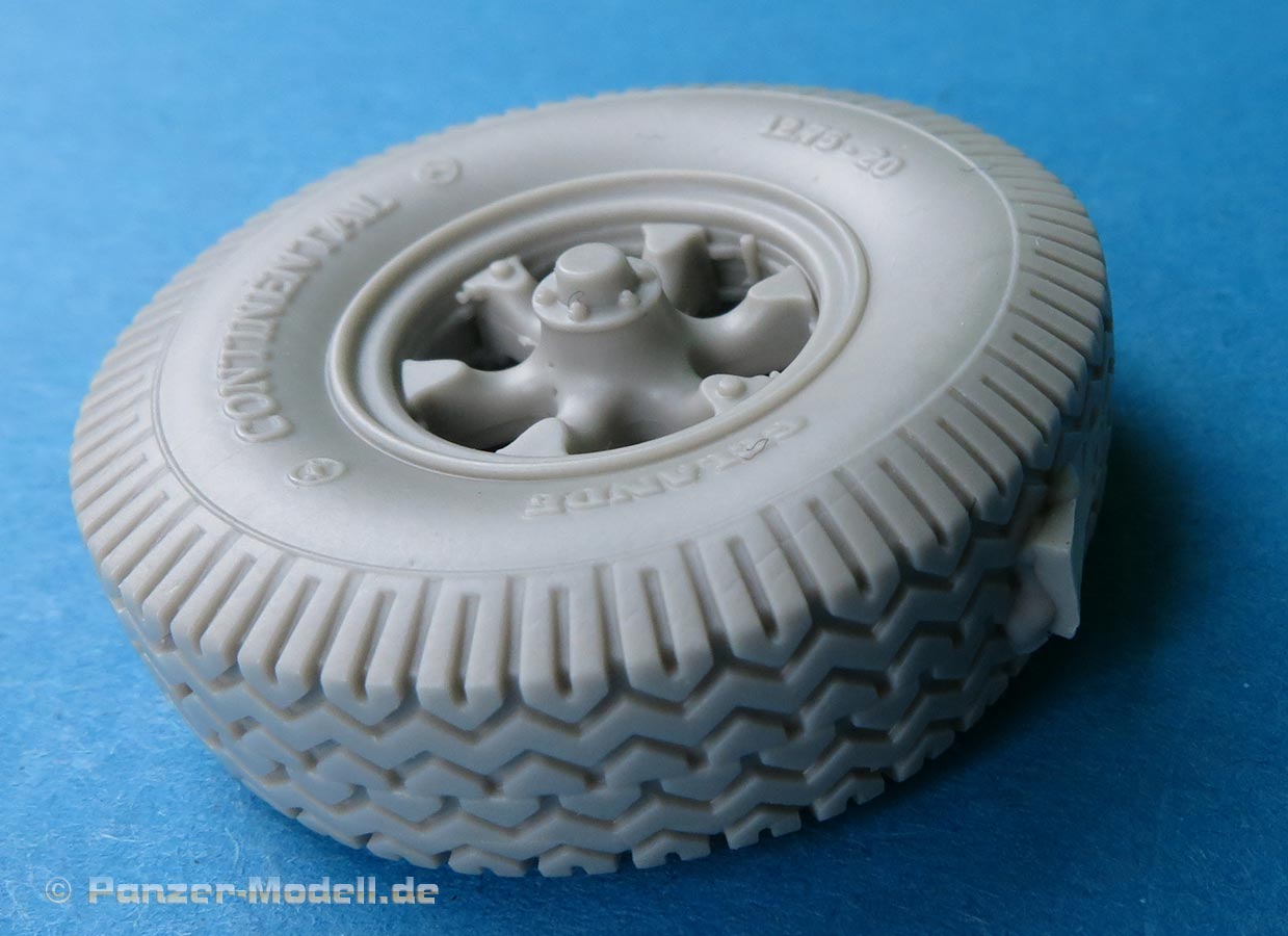Dazu erfreuen uns hochfeine Herstelleraufdrucke auf den Flanken von Continental. Wobei sie auch gern eine Spur flacher sein könnten - aber das kann der Modellbauer nötigenfalls auch selber nach eigenem Gusto nachschleifen.
