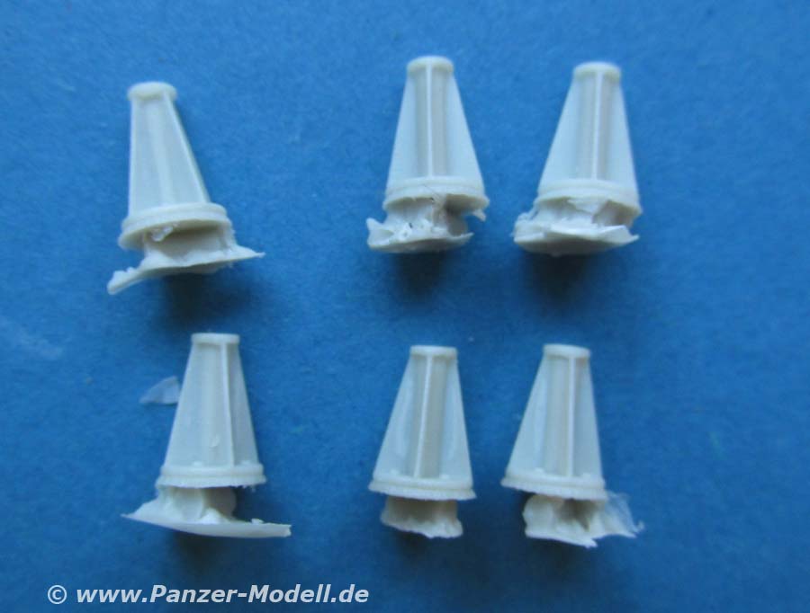 In dem Set finden sich 6 Resinteile zur Darstellung der ominösen Halterungen wie man sie zuerst an Panthern vorgefunden hat und mittlerweile Fotos von Tiger I mit ebensolchen halterungen aufgetaucht sind. Bislang weiss noch niemand wofür diese damals vereinzelt an Tiger I zu finden waren. Das Set kostet rund 5 Euro und ist direkt vom Hersteller erhältlich.