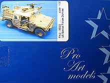 Die U.S. Special Forces haben Humvee's für ihre Spezialeinsätze umgerüstet. Hier wurden diverse Veränderungen und Modifikationen vorgenommen, die exakt auf das jeweilige Einsatzspektrum der Special Forces abgestimmt wurden. Ein solches Fahrzeug, für den Einsatz im Irak oder Afghanistan, kann mit dem Umbausatz dargestellt werden. Das Set enthält etliche, teilweise hauchdünne Resinteile in allerbester Qualität. So finden sich hier z. B. neue Vordersitze, Funkgeräte, Rückenlehnen für die hinteren Sitze, eine zusätzliche Plattform zur Verstauung von Ausrüstung am Fahrzeugheck, Zusatzteile für die Waffenstation auf dem Dach des Humvee, eine Freirichtlafette zur Montage des M249 an der Beifahrertür, eine Frontseilwinde, Sonnenblenden, Nebelwurfanlagen, GPS Antennen, verschiedene Antennensockel, einen kompletten Radsatz mit Good Year Reifen inkl. Reserverad und weitere Zubehör- und Ergänzungsteile. Eine umfangreiche Bauanleitung ist ebenfalls vorhanden. Die Bauteile sind, wie immer bei Pro Art Models, von feinster Detaillierung. Verzug ist nicht festzustellen, dafür aber haben ein paar der Teile ganz kleine Luftblasen. Diese lassen sich jedoch mit einem Tröpfchen Sekundenkleber problemlos verschließen. Während dieses Review online geht habe ich bereits mit dem Bau des Modells begonnen. In den ersten Baustufen gab es keinerlei Probleme, ein Baubericht zu diesem außergewöhnlichen Modell folgt in Kürze. Der Umrüstsatz kostet 40,90 EUR