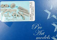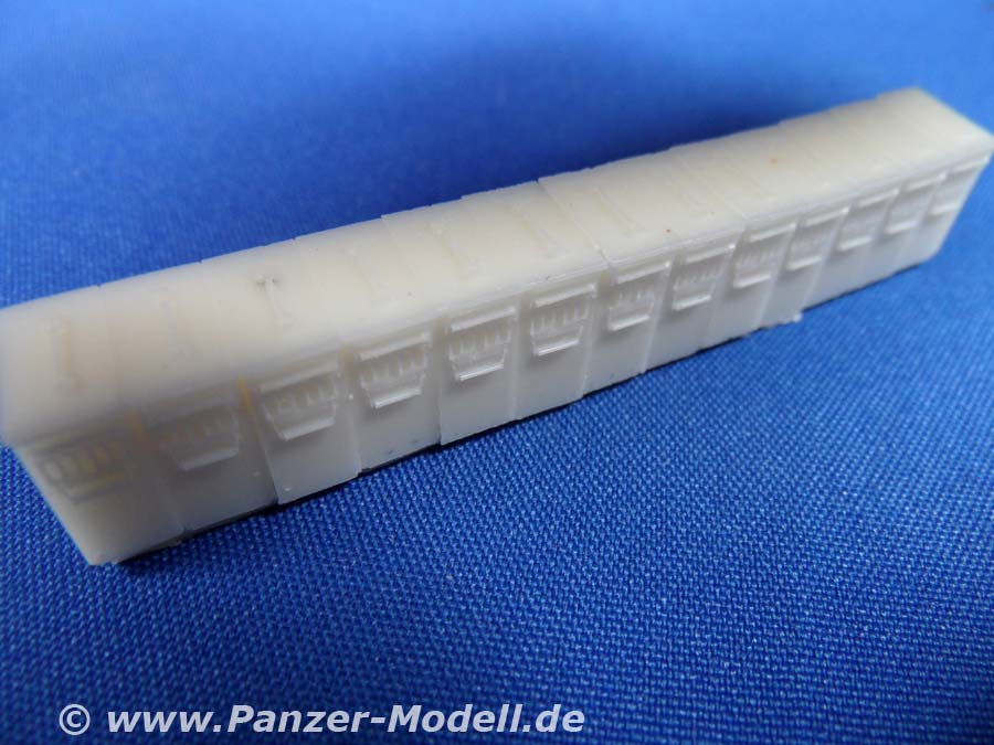 Equipment set for Special Forces LMTV (WAR PIG) Als abschließendes Ausgepackt zum „Kriegsschwein“ gibt es nun noch das Gerödel! Enthalten sind erstklassige Resinteile für die typische Beladung. Dazu zählen erstklassige „Streifen“ aufgereihter Munitionskisten für .50cal MGs, Ersatzräder für LMTV und HMMWV (werden am Heck mitgeführt), Kisten, Panzerabwehrwaffen, eine Krankentrage, zwei zusammengerollte Tarnnetze, ein Wagenheber usw. Alles ist völlig Verzug- und Blasenfrei und weiß mit erstklassigen Details zu überzeugen. Die Angüsse sind nicht wirklich dezent, aber noch im Rahmen. Was nicht im Set enthalten ist (ist ja auch kein Equipment & Crew set!), sind die persönlichen Ausrüstungsgegenstände der Besatzung (sowie diese selbst), wie Schlafsäcke, Isomatten, Rucksäcke usw. Diese gibt es aber zuhauf aus Plastik wie Resin in unterschiedlichster Qualität und Preisklasse. Vorbildmaterial zum „vollrödeln“ findet sich besonders in Form zahlreicher Fotos im Internet und div. Bauberichten. Damit wäre das „Kriegsschwein“ dann komplett!