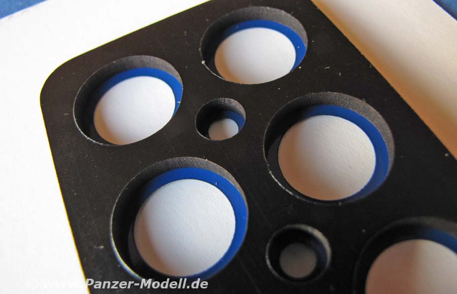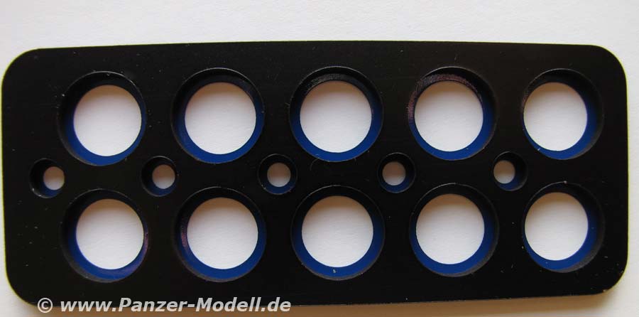 Diese Schablone bietet die entsprechenden Aussparungen für die Räder der Panzer II und Marder II von Tamiya, wobei ich davon ausgehe, dass es speziell für die alten Bausätze gedacht und passend ist.