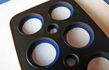 Wie die übrigen Sets ist auch dieses aus festem, dicken Material in das die Laufrollen schön hineingelegt werden können, um sie zu lackieren und mit einer blauen Folie von der anderen Seite die Gummierung abgedeckt ist.