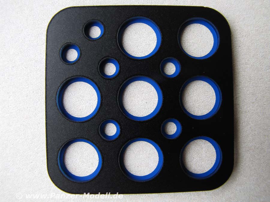 Diese Schablone bietet die entsprechenden Aussparungen für die Lauf- und Stützrollen des Land-Wasser-Schleppers von Hobby Boss.