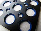 In diese angenehm feste Schablone können die Laufrollen passgenau eingelegt werden und die Laufrollen einer Seite in einem Rutsch lackiert werden, ohne dass die vorher gemalte Gummierung dabei üebrmalt wird, denn diese wird perfekt abgedeckt. Das spart Zeit und Nerven.