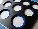 Die Schablone hat die entsprechenden Aussparungen für die unetrschiedlichen Laufrollen einer Seite - d.h. in nur 2 Durchgängen hat man diese sonst mühsame Arbeit erledigt.