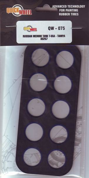 Diese Schablone bietet die entsprechenden Aussparungen für die Räder den T-55 von Tamiya(#35257). Analog den bereits erschienen Sets aus dem Hause Quickwheel ist auch dieses aus festem, dicken Material in das die Laufrollen schön hineingelegt werden können, um sie zu lackieren.