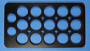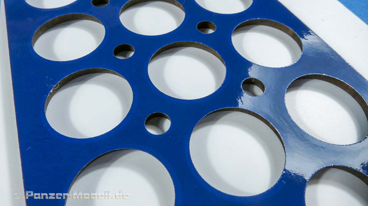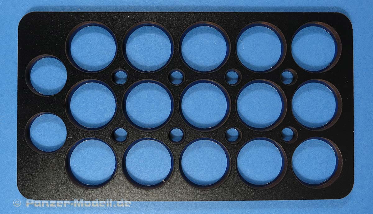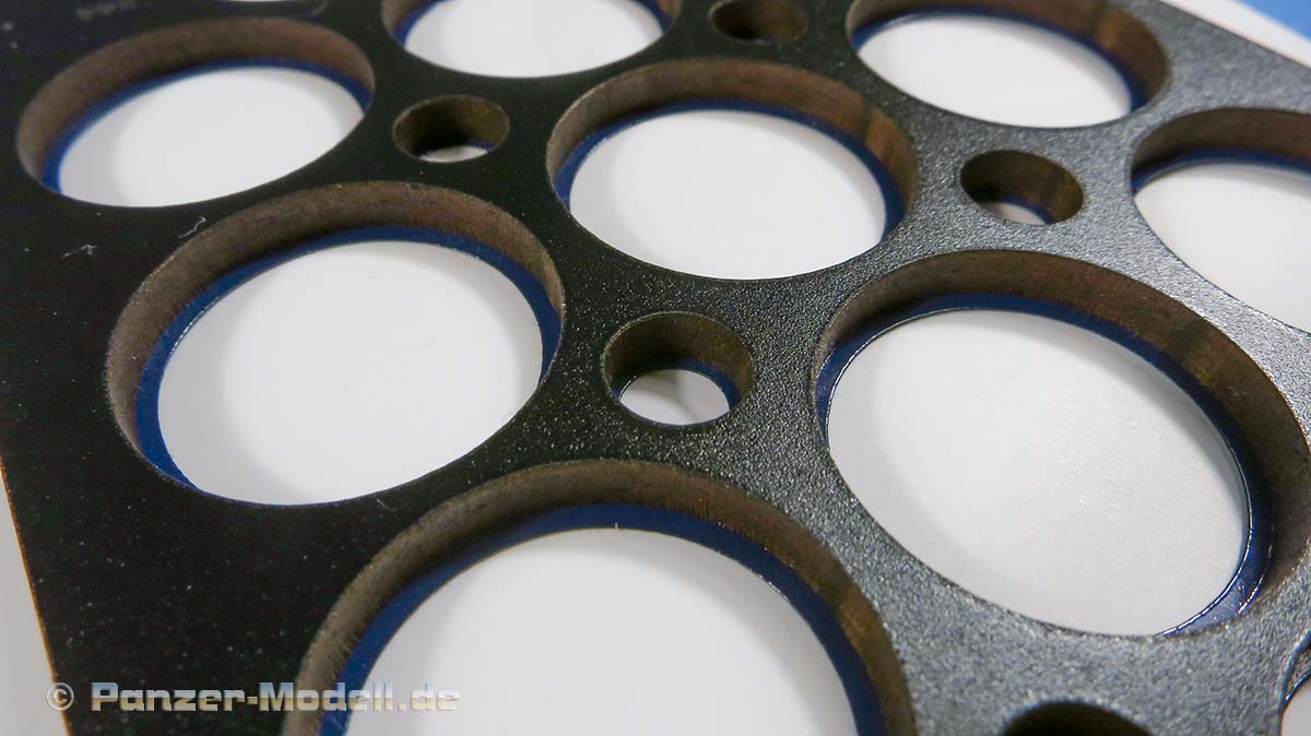 Diese Schablone bietet die entsprechenden Aussparungen für die Laufrollen des Leopard 2 Bausatzes aus dem Hause Border, zum Bau eines Leopard 2 A5 oder A6.