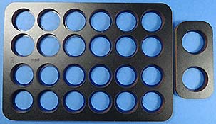 Der große Vorteil dieser Art Spritzschabone ist, dass die Laufrollen zum einen ALLE gleichzeitig lackiert werden können und zum anderen exakt und schnell hineingelegt werden können.