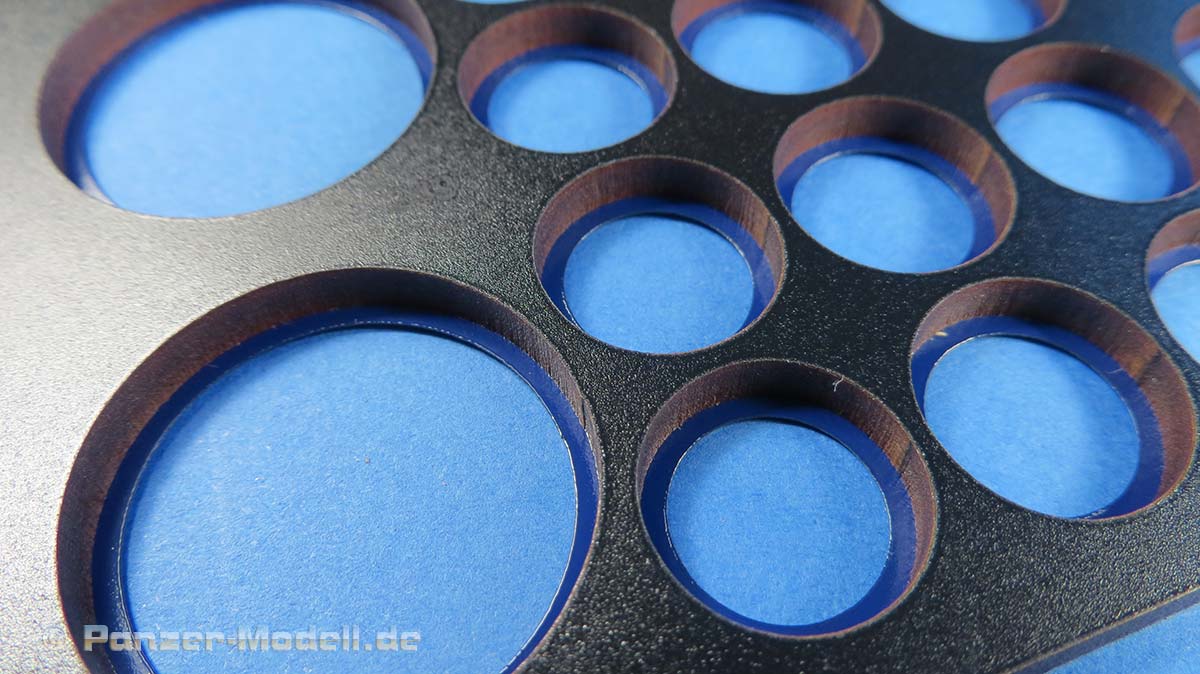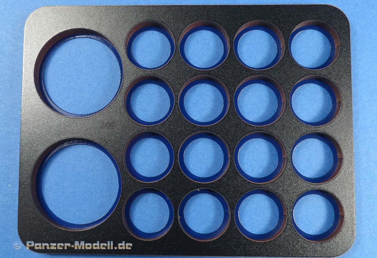 Wie bekannt und beliebt, sind auch diese Schablonen aus festem, dicken Material, in das die Laufrollen und Treibräder schön saugschmatzpassend hineingelegt werden können, um sie zu lackieren.
