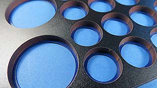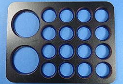 Der große Vorteil dieser Art Spritzschabone ist, dass die Laufrollen zum einen ALLE gleichzeitig lackiert werden können und zum anderen exakt und schnell hineingelegt werden können.