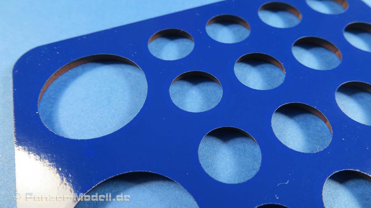 Im Set sind eine große und eine kleine Schablone. Diese bieten die entsprechenden Aussparungen für die Laufrollen der Hummel von Tamiya.