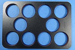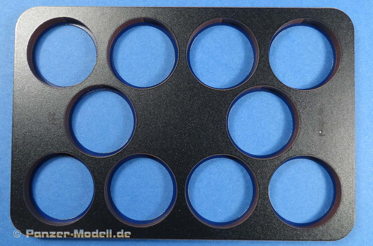Der große Vorteil dieser Art Spritzschabone ist, dass die Laufrollen zum einen ALLE gleichzeitig lackiert werden können und zum anderen exakt und schnell hineingelegt werden können.