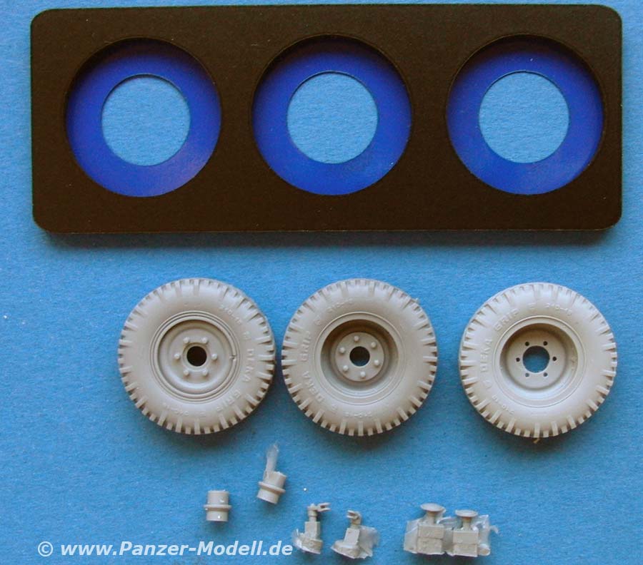 In diesem Set gibt es dieses Mal passende Resinreifen für die Sd.Kfz.6, die gerade nagelneu auf den Markt kommen. Es handelt sich dabei um die beiden Frontreifen plus einen Ersatzreifen.