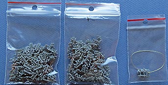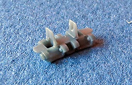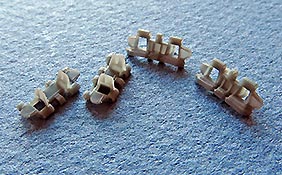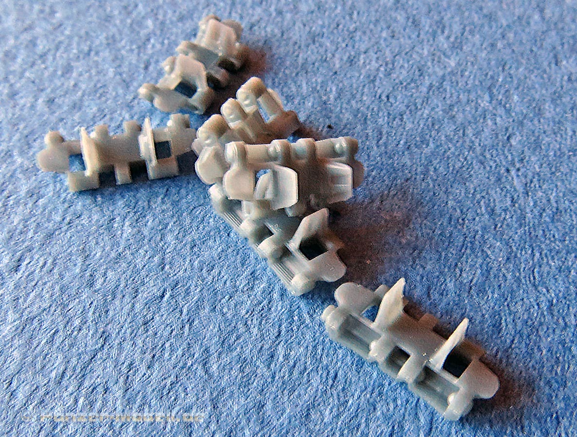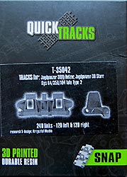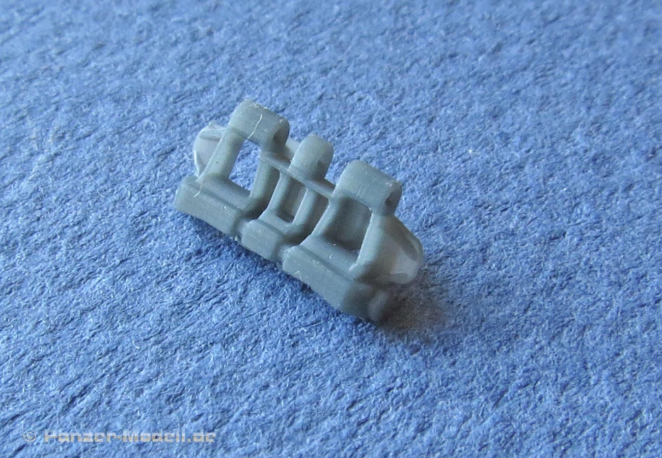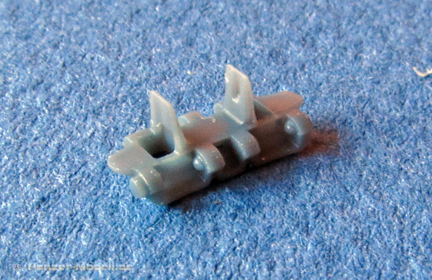 Im vorliegenden Karton finden wir 240 Kettenglieder aus belastbarem 3D Druck Resin - diese sind vom Kettentyp Kgs 64/350/104 und stellen damit einen zweiten späten Kettentyp für die Jagdpanzer 38 dar. Die Kettenteile sind in zwei verschiedenen Tütchen nach rechts und links untergebracht und ein drittes Tütchen mit Draht und Verbindungsgliedern.