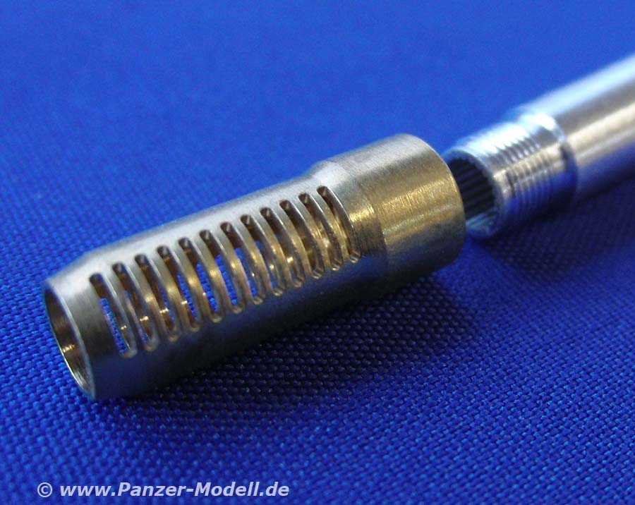 Das Set beinhaltet die beiden Rohren der Hauptbewaffnung als einteilige und schön gedrehte Alurohre. Diese sind sauber gedeht und weisen eine exzellente Innendetaillierung mit Feldern und Zügen auf.