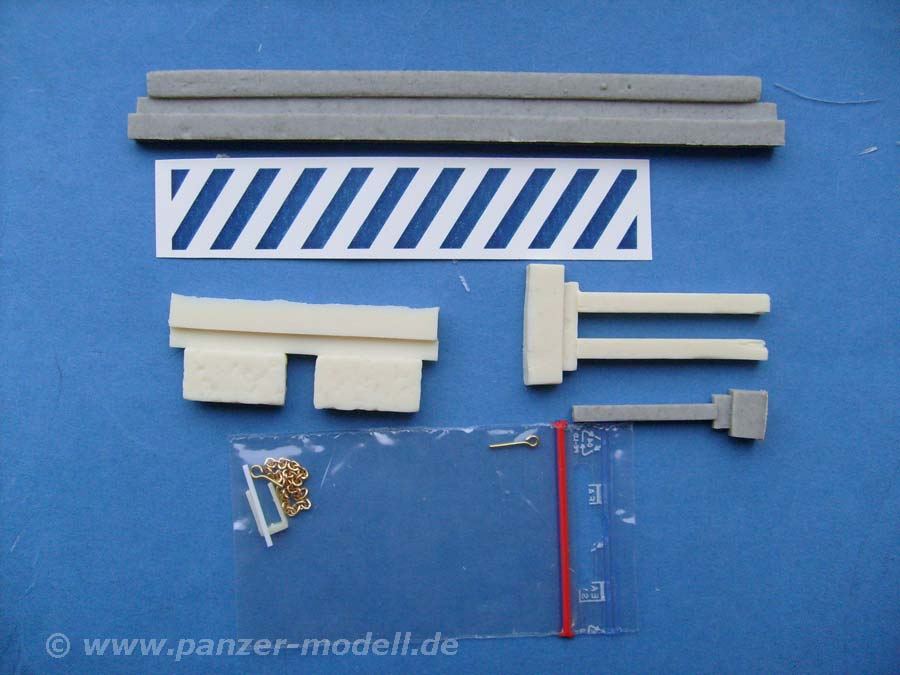 Und so bietet Reality in Scale hier ein Set mit einer Straßenschranke wie man sie an Kontrollpunkten oder Grenzübergängen einsetzen kann.