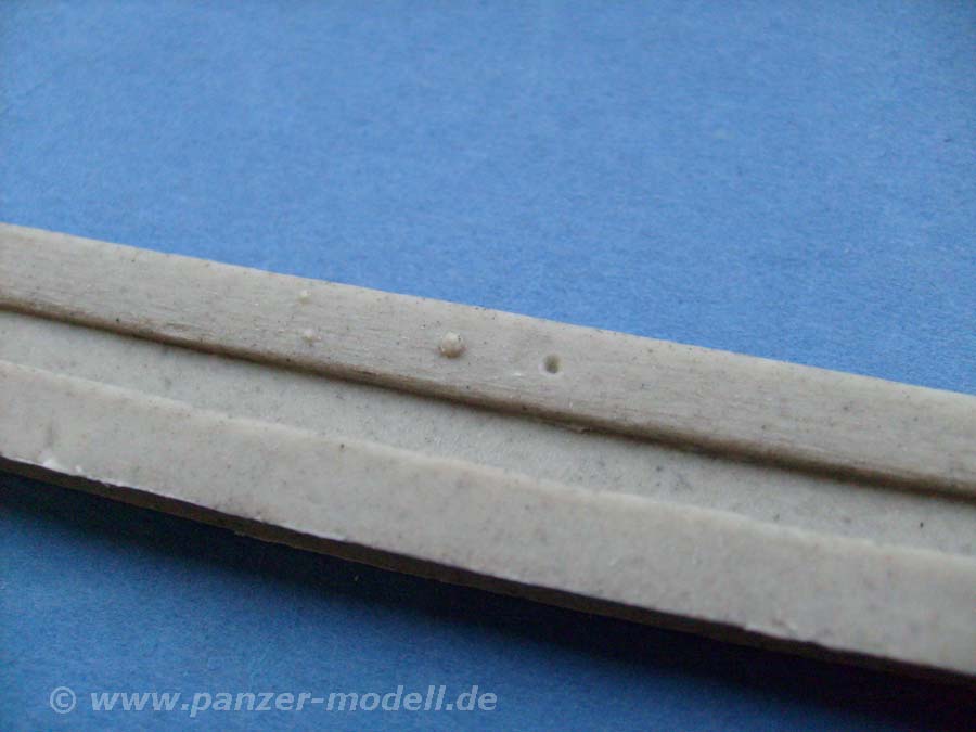 Der Guss der Teile ist sehr gut und mit feinen Strukturen versehen. Das Decal mit der Schrägbalkenoptik ist sauber gedruckt.