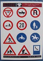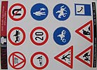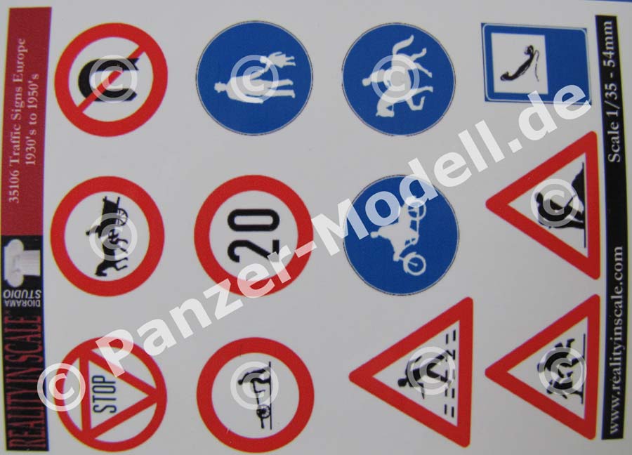 Das Set bietet 12 verschiedene auf dickerem Material gedrucken Verkehrszeichen, die laut Hersteller in Europa von den 1930ern bis 50ern gültig sind.