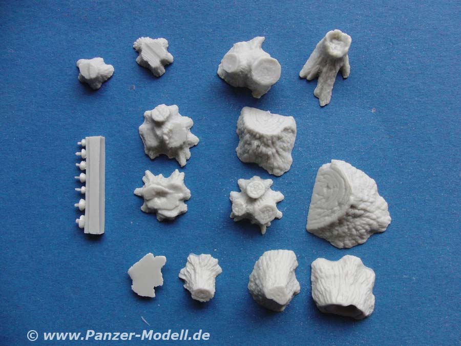 Der Guss ist exzellent sauber und detailliert und im falle der Baumstümpfe sogar ohne Anguss, was eine Freude für den Modellbauer ist. Aber auch die Pilze sind mit einem kurzem Knipps entfernt.