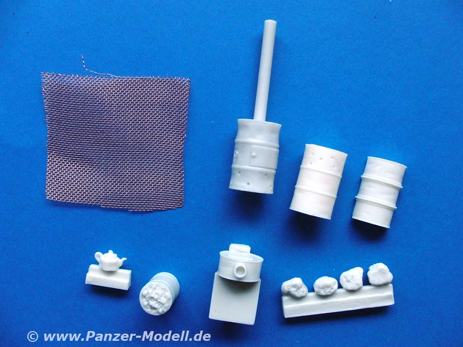 In diesem Set finden sich 10 Resinteile und Metallgittergeflecht.
