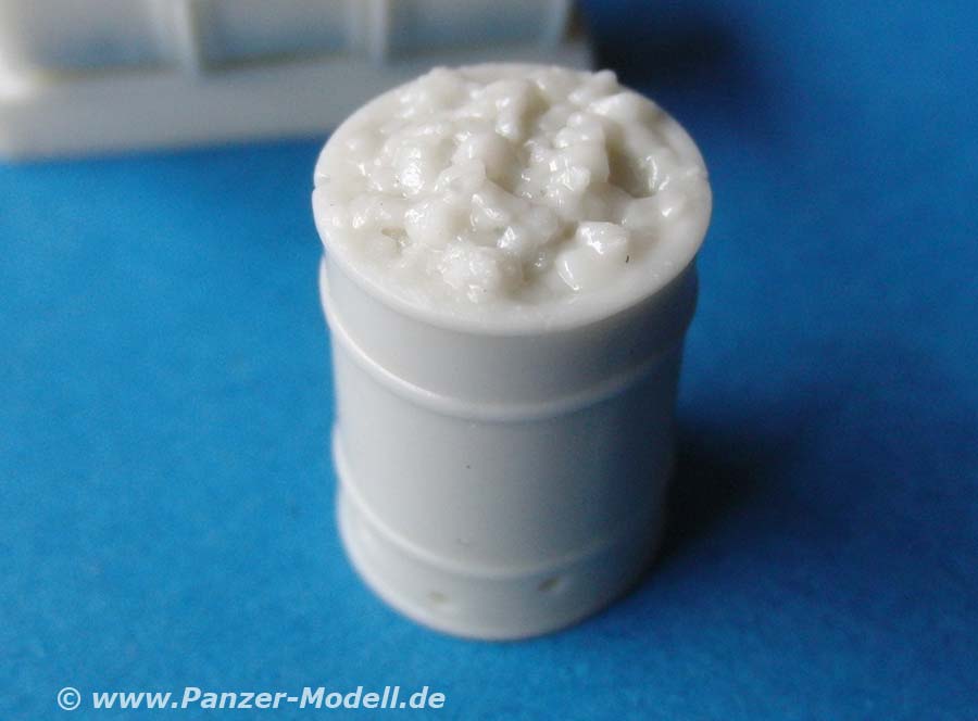 Der Guss ist gut, auch wenn man bezüglich der Löcher in einzelnen Fässern geneigt wäre von Gießfehlern zu sprechen - aber Entwarnung: das soll so sein und die durchgefressene Aussenhaut der Fässer darstellen.