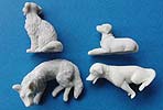 In diesem Set finden sich 4 Resinteile die jeweils einen Hund darstellen.