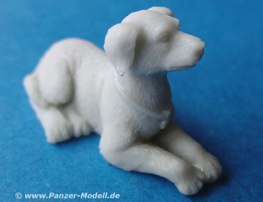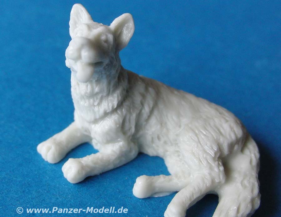 Auch die Posen der Hunde in sitzender und liegender Position sind gut gewählt und schön dargestellt. Gerade der liegende Schäferhund sticht hier hervor und dürfte im angemalten zusatnd dann eine schöne bereicherung für ein entsprechendes Diorama sein.