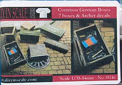 In diesem Set finden sich 10 Resinteile und ein Decalbogen zum Bau von sieben Kisten.