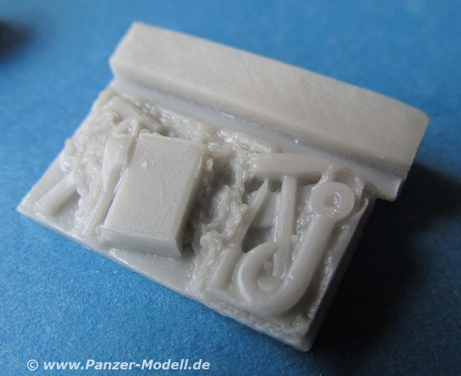 Die Gussqualität ist ganz ausgezeichnet. Die Wände der Kisten sind extrem dünne und dabei gerade und nicht verzogen udn die Werkzeuge schön detailliert.