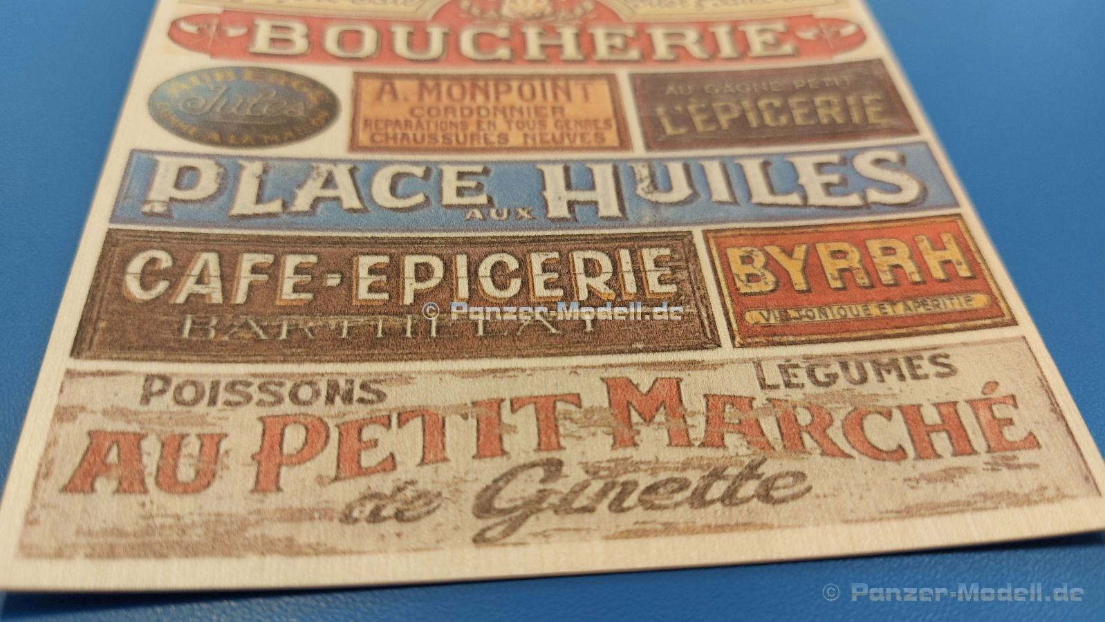 Ein nettes Set zur Ausstattung von Häusern/Ruinen eines in Frankreich spielenden Diorama. Für ca. 7 Euro bekommt man 8 Schilder, die für 1:35 vorgesehen sind, aber laut Hersteller auch noch für 1:48 geeignet sein sollen.