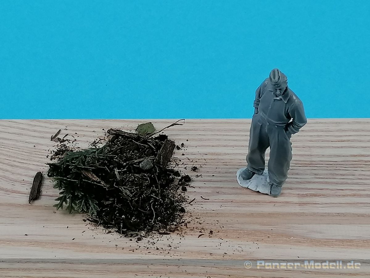 Für den Dioramenbau hat o.g. Firma eine ganze Reihe von Ausschmückungsteilen und Zubehör herausgebracht. In der Box finden sich Material für die Bodengestaltung eines kleinen Waldareals auf Dioramen. In der Mischung finden sich neben kleinen Holzstücken auch ein paar Zweige, die wiederum aus Weichplastik hergestellt sind. Für manche Dioramenbauer durchaus in Ordnung obwohl der Preis m.E. zu hoch ist. (Mit ein paar Zip-Lock-Beuteln in der Tasche lassen sich solche Materialien durchaus bei Spaziergängen finden.)