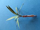 Beim Zurechtbiegen der Blätter muss man darauf achten, dass der Draht, der die Mittelrippe des Blattes darstellt dann auch auf der Unterseite ist und sich das Blatt an sich nicht von dem Draht hebt. Hier muss sonst mit einem Tröpfchen Sekundenkleber nochmal nachgeholfen werden.