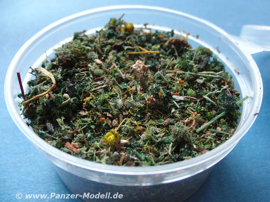 Die verschiedenen Anteile sind fein und sehr gut gewählt und absolut passend für Maßstäbe rund um 1:35. Ganz ab von der Bezeichnung lässt sich diese Begrünung auch für andere Bodenarten verwenden.