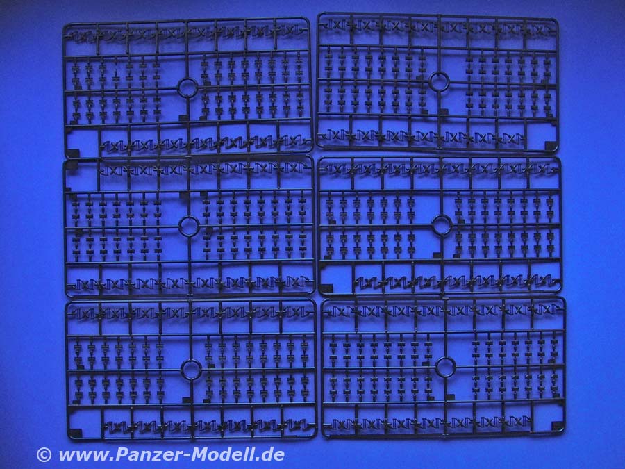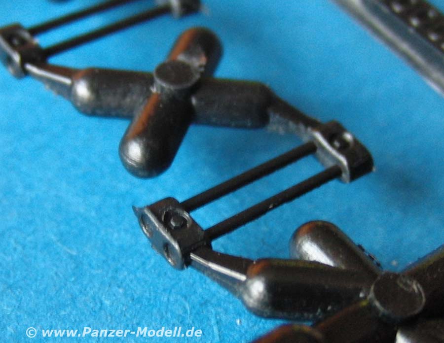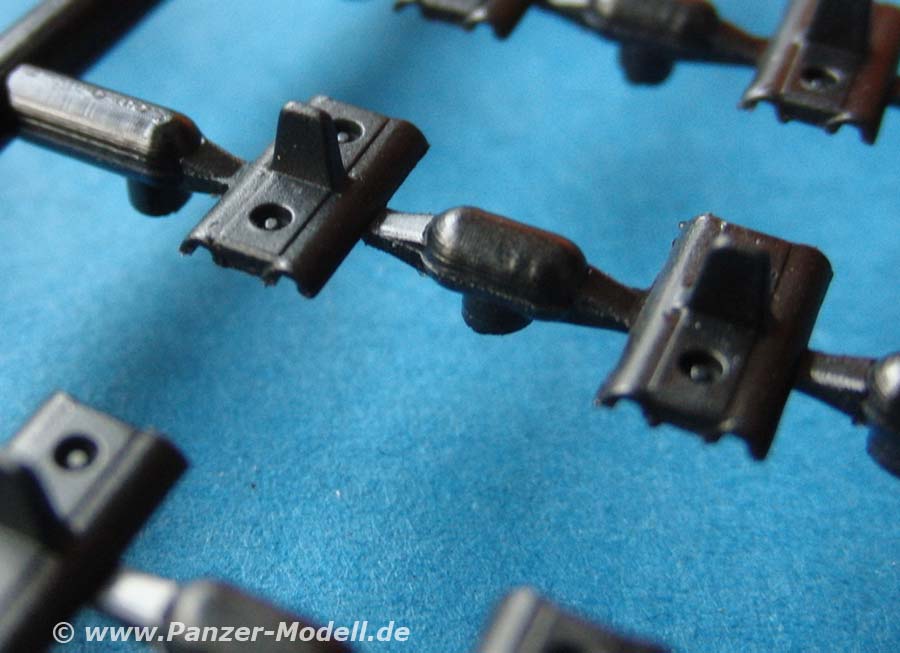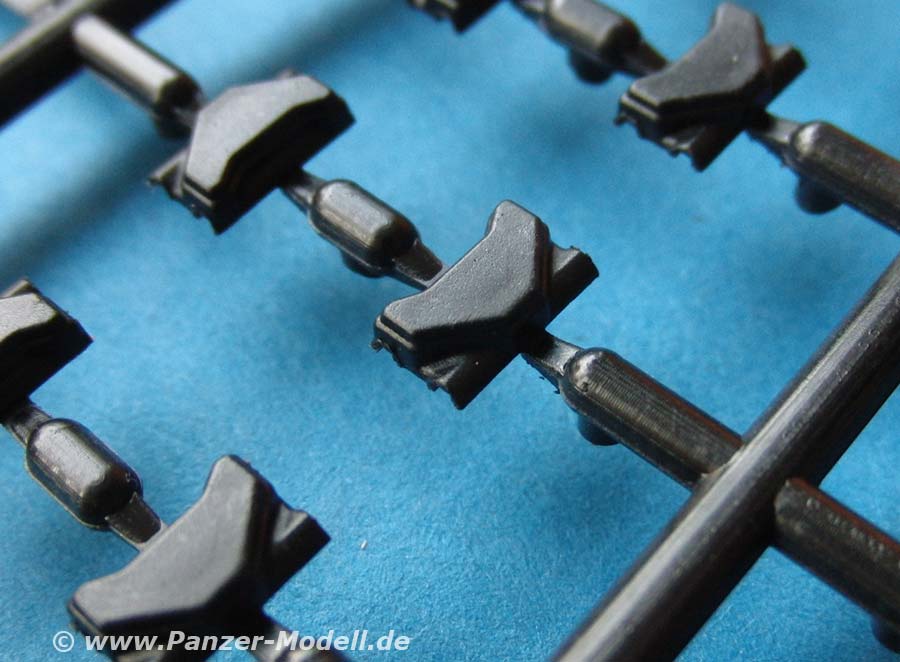 Der Guss der Teile ist 1A sauber und detailliert. Die hörnchenförmigen Kettenpolster sind sehr schön dargestell wie auch die Ketteninnenseite mit Führungszahn.