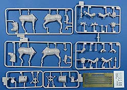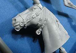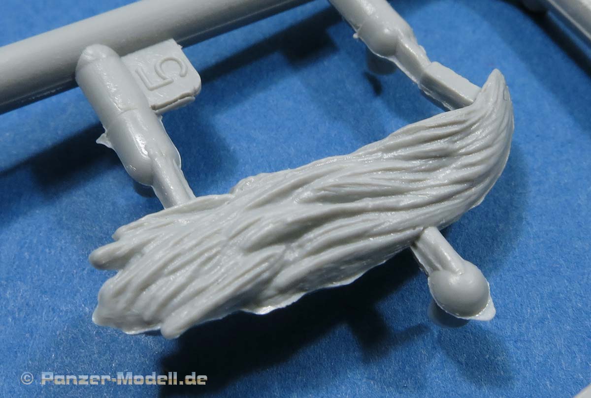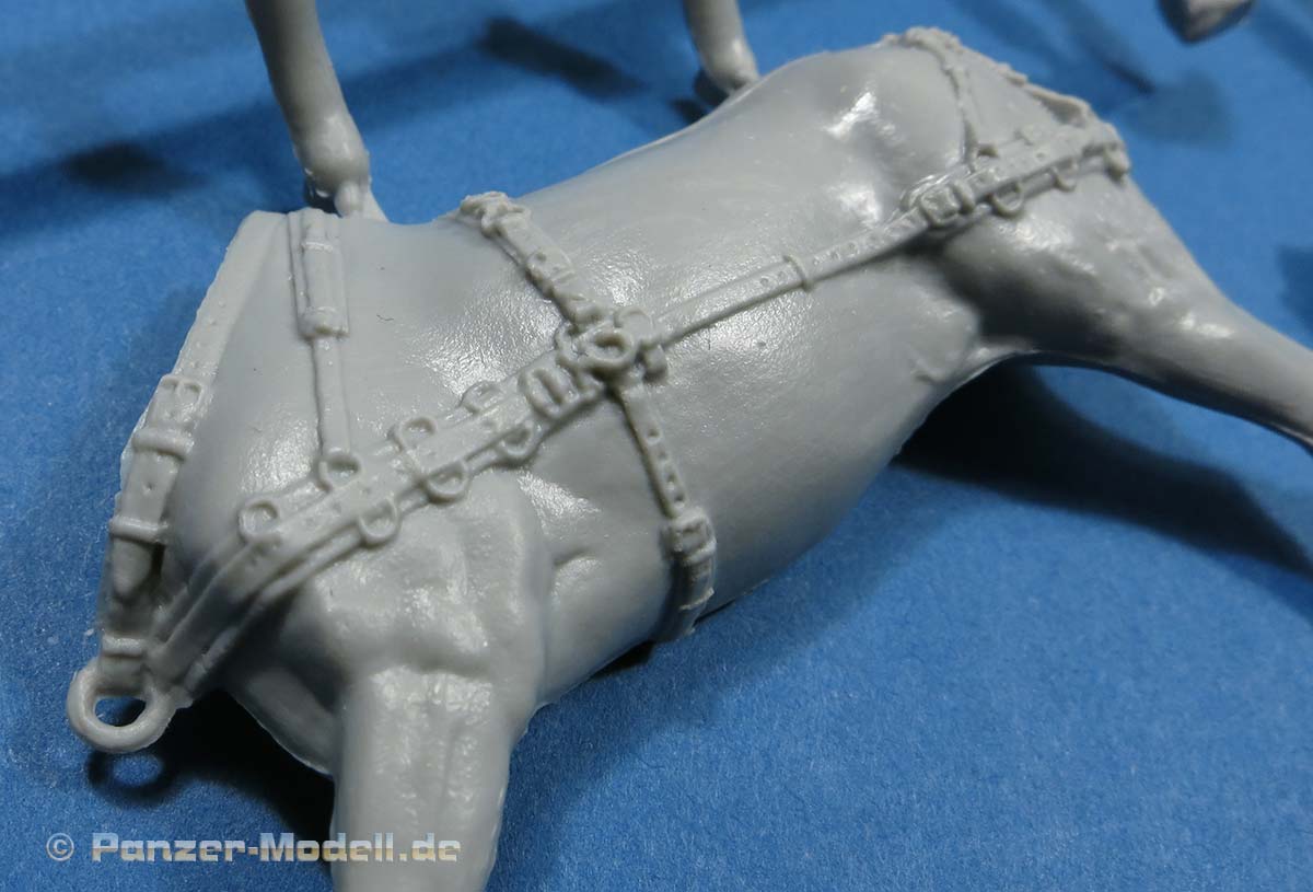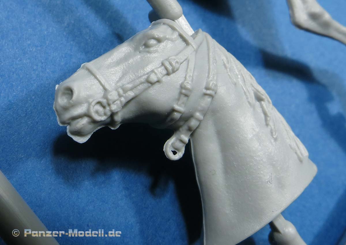 Dafür muss man sagen, dass das angegossene Zaumzeug auf den Pferden wirklich sehr gut und fein ist. Andererseits muss ich sagen, dass mir an den Pferden selber ein wenig die raue Fellstruktur fehlt - sicher ist das in 1:35 Plastikspritzguss eine Herausforderung, aber mittlerweile zeigen die Firmen wie z.B. mit feiner Antirutschbeschichtung und Gusseisenstruktur dass es geht. Nicht falsch vestehen ... ich meine eine etws raue Oberfläche zu erkennen, aber es erscheint irgendwie doch zu glatt.