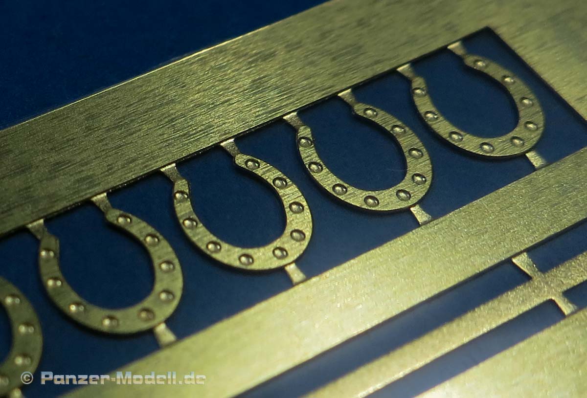 Das Sattelzeug und die Steigbügel wird einzeln angebracht und machen einen guten und detaillierten Eindruck. An den Steigbügeln kommen auch noch PE Teile zum Einsatz. Auch für die Hufeisen hat Riich entsprechende, feine PE Teile beigelegt.
