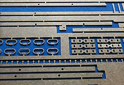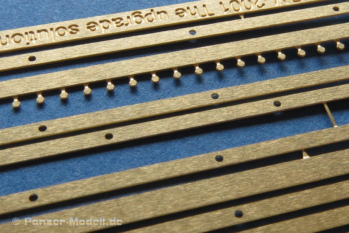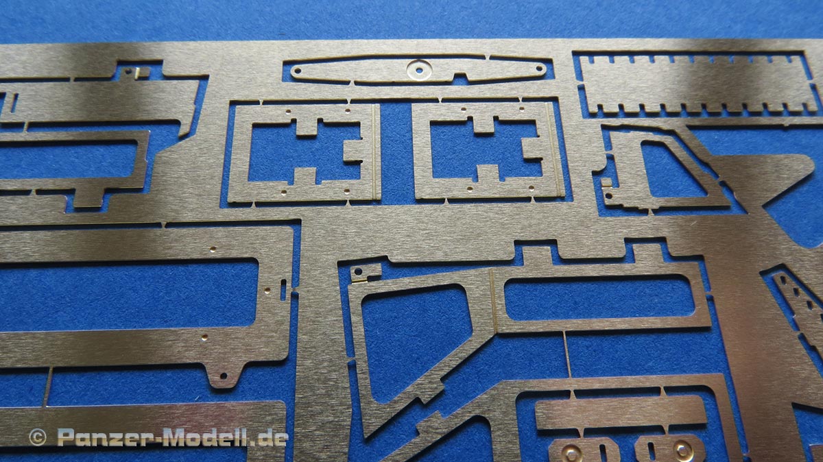 Die PE Teile umfassen sämtlich neuen Halterungen für die Slat Elemente, die teilweise recht aufwändige Rahmenboxen sind und teilweise mit winzigen U-Schäkeln als PE Teile versehen werden müssen. Diese Halterahmen sin mehrteilig und müssen teilweise mehrfach gefaltet werden.