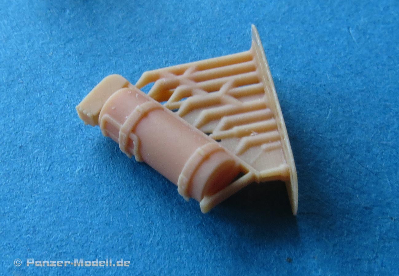 Ergänzt werden diese PE Details durch die 3D Druckteile - hier finden wir fein detaillierte Teile für die Mündungsbremse mit Abdeckung in einem Stück(!), der Bosch Scheinwerfer und auch das Kolonnenrücklicht, das man endlich mal mit zugehörigem PE Teil entweder mit den 4 grünen oder den zwei (rot und orange) Lichtern darstellen kann. Desweiteren noch ein Feuerlöscher.
