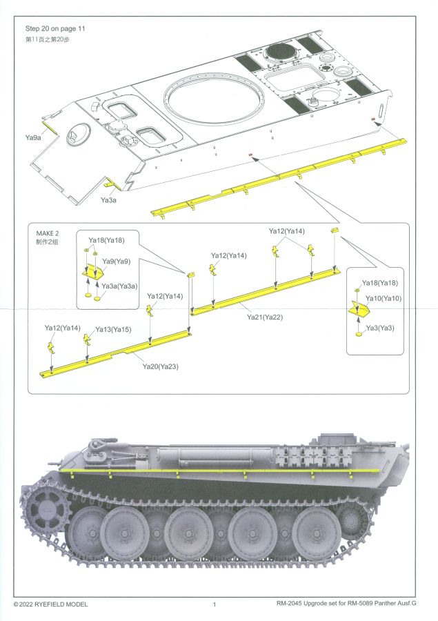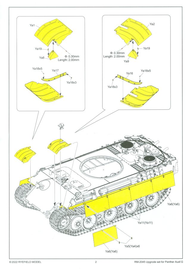 Aufgrund seiner Auslegung kann man das Set sicherlich auch für Panther G anderer Hersteller verwenden. Eventuell muss man kleine änderungen am Modell vornehmen. Auf alle Fälle ein sinnvolles Set für die Rye Field Modelle RM-5018, -5019, -5045 und -5089, die dadurch ein anderes Aussehen erhalten. Ggfs. braucht man dann noch andere Decals, wenn man ein authentisches Fahrzeug darstellen möchte. Ein Set geeignet zum üben für PE-Anfänger, da man abgesehen von den vorderen Schutzblechen meist nur 90 Grad Biegungen vornehmen muss.