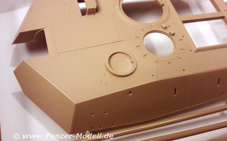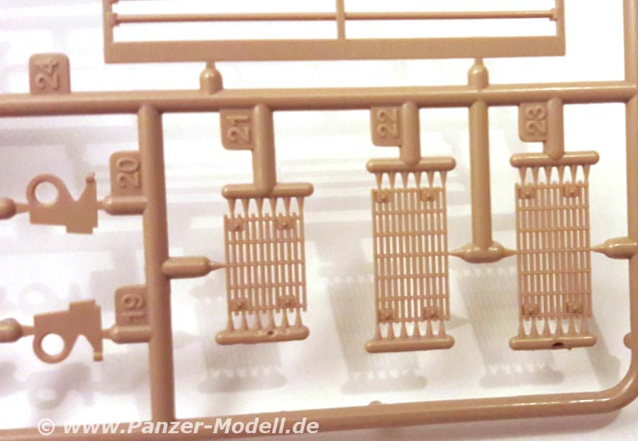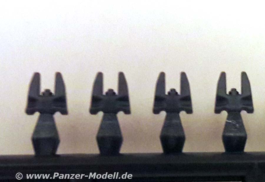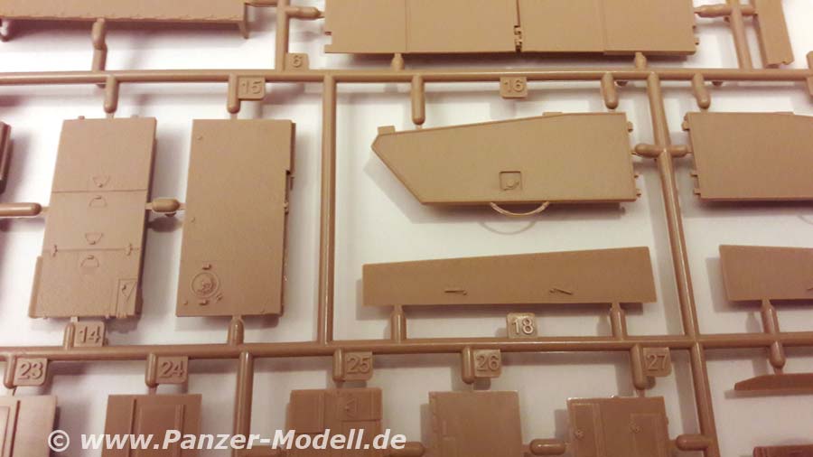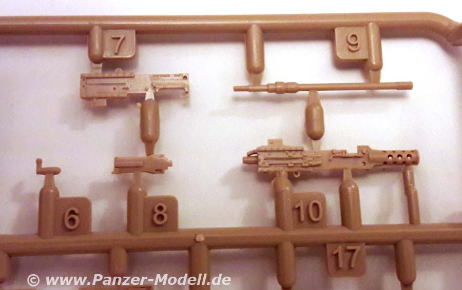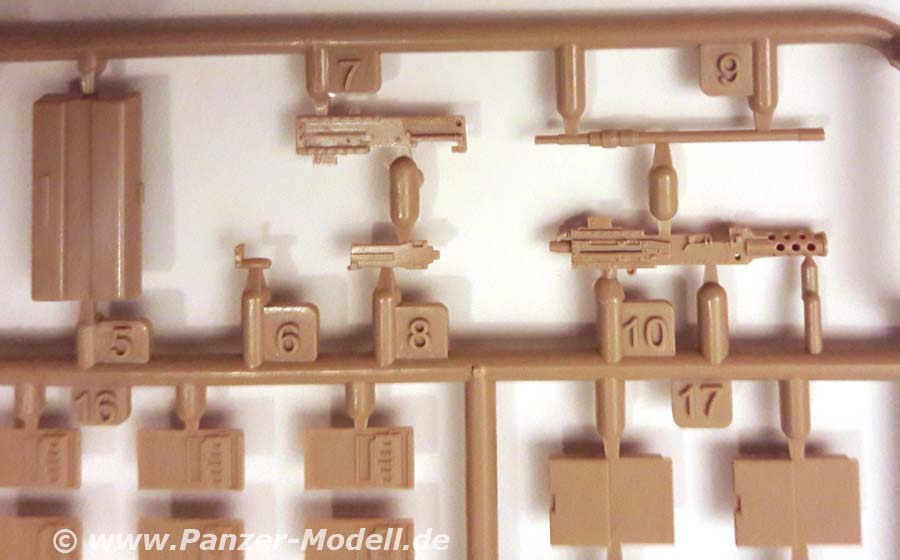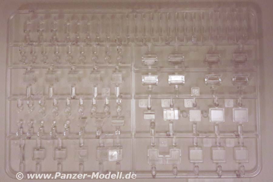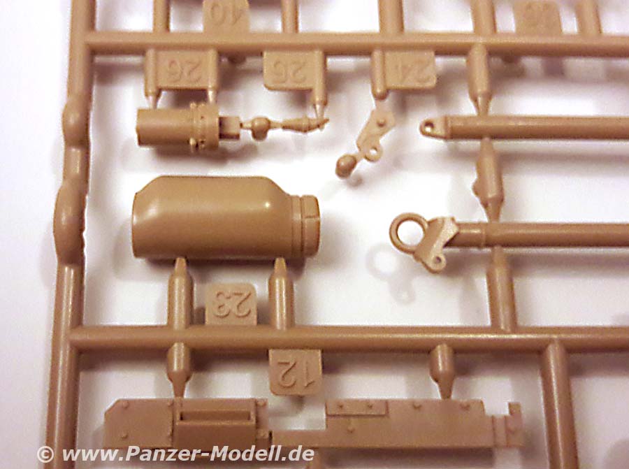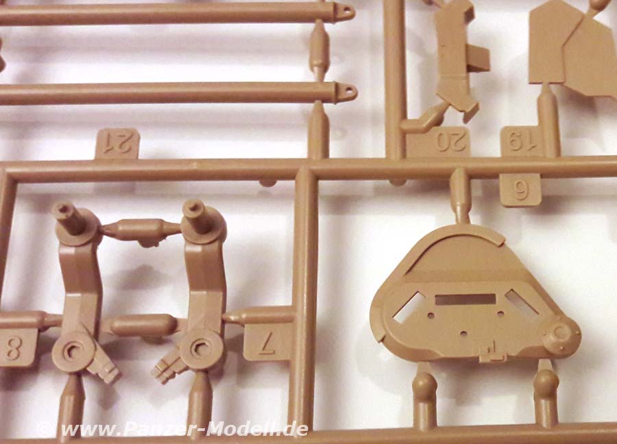 Alle Teile präsentieren sich sauber und randscharf gespritzt. Fischhäute und Grad sucht man hier vergebens. Auswerfer-Marken sind an später nicht mehr sichtbaren stellen verborgen.