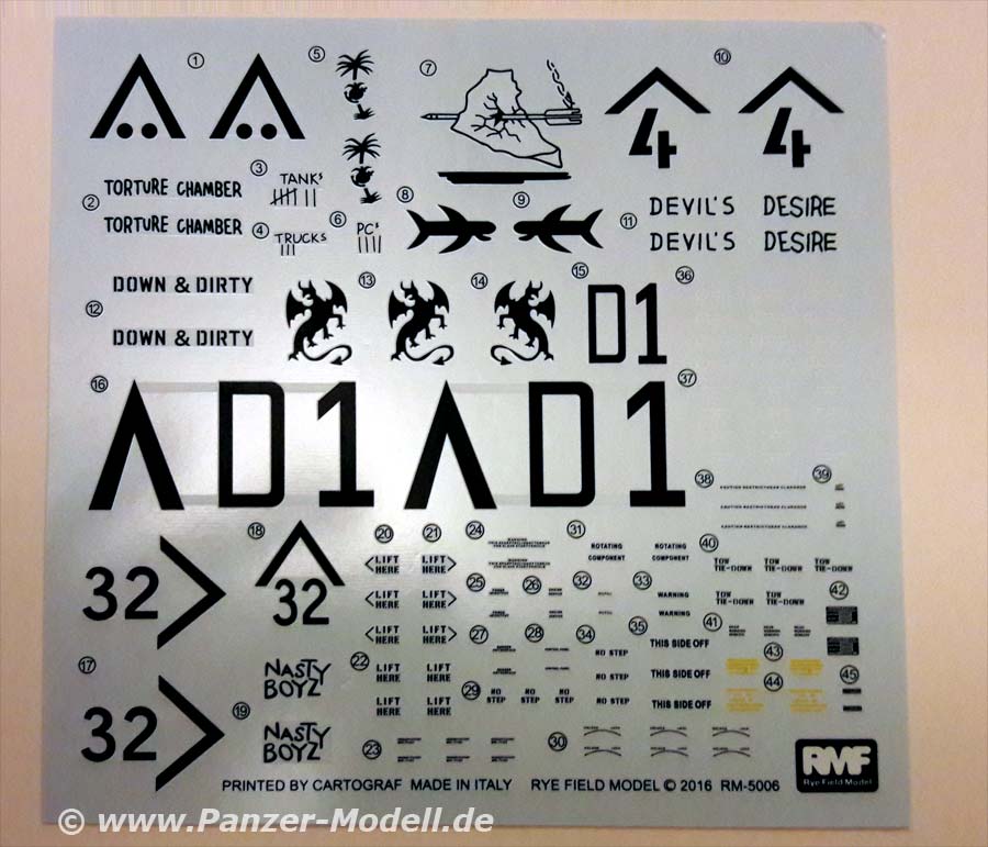 Im Grunde genommen sind die Spritzlinge im Karton die gleichen wie beim Modell des M1A1 mit Inneneinrichtung (RM-5007) nur halt ohne diese.