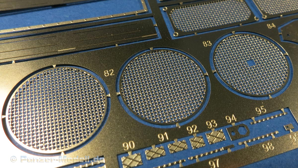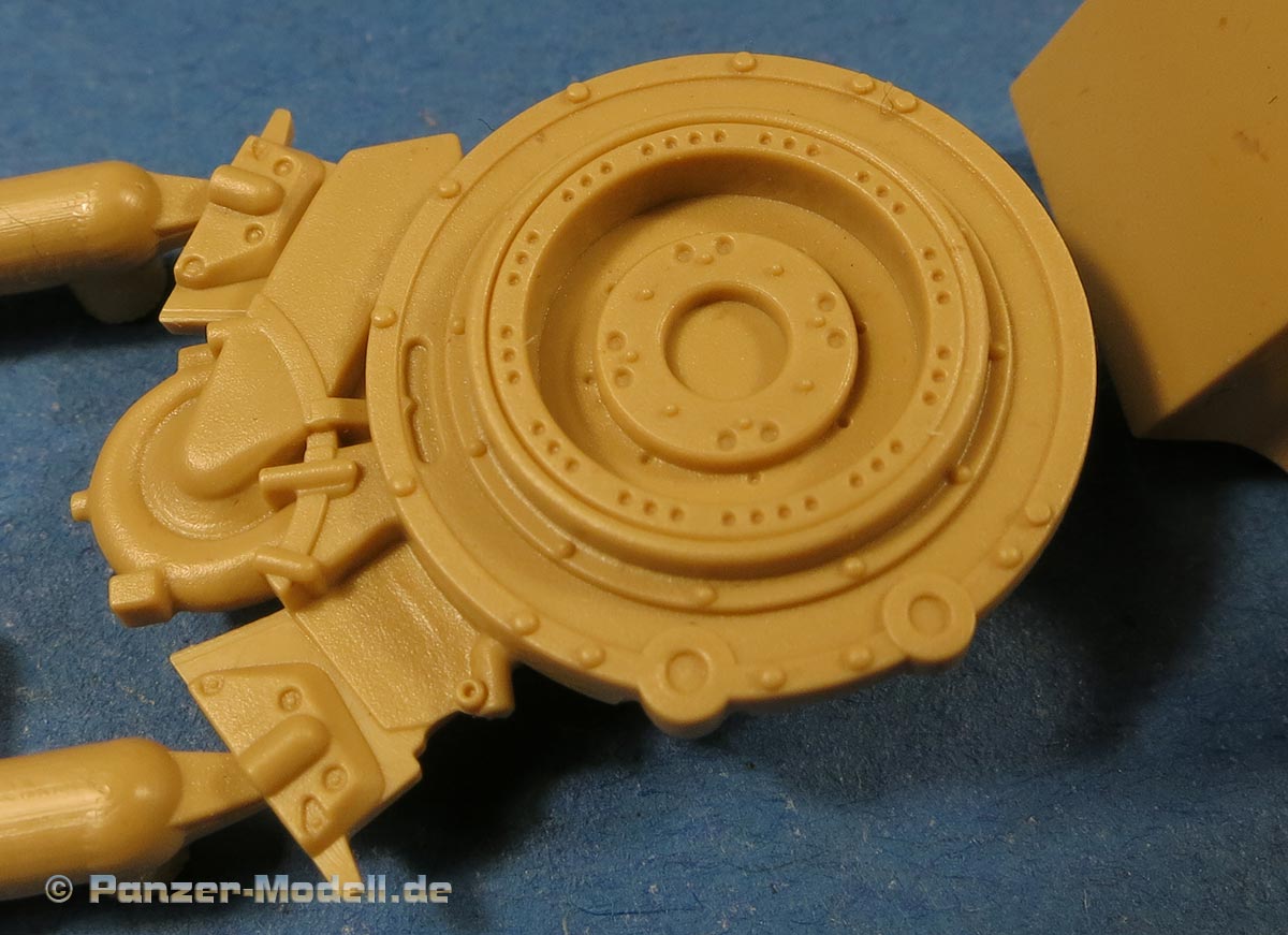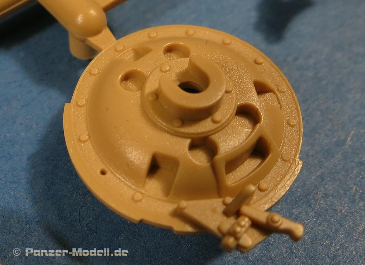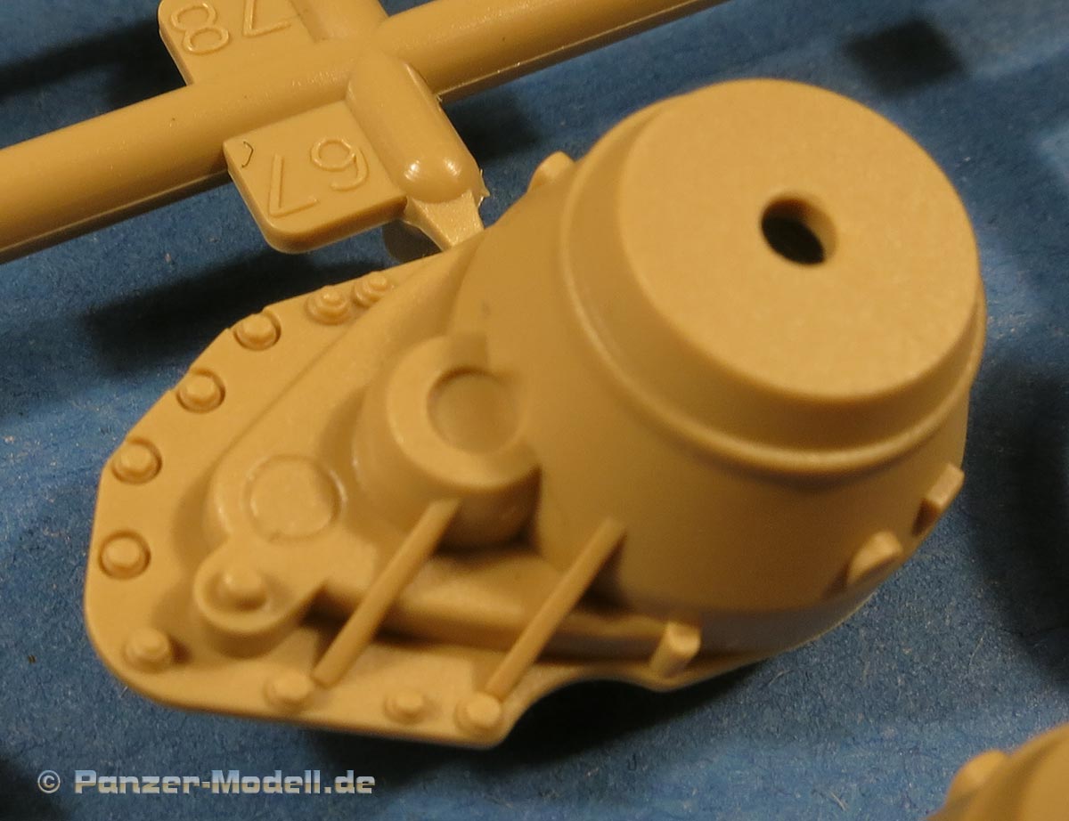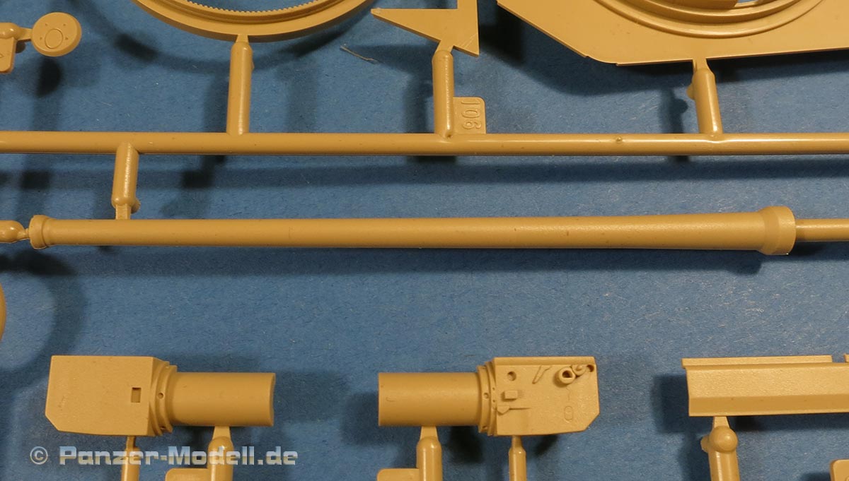Das Kanonenrohr ist prinzipiell einteilig mit mehrteiliger Mündungsbremse. Für die Kanonenblende liegt die normale wie auch die Kinn-Kanonenblende bei. Auch in sehr schöner Ausführung mit feinen Details.