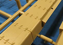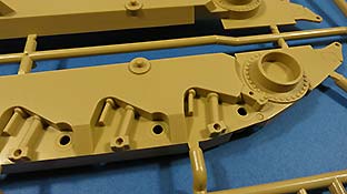 Die Unterwanne ist einteilig gespritzt, zumindest das Grundgerüst, denn das ist wirklich nur die Unterwanne - das Laufwerk wird wie beim Original als abgekoppeltes Laufwerk jeweils in einer Großkomponente im Ganzen dann an der Wannenseiten geklebt. Die Grundwanne ist daher an sich ohne große Details.