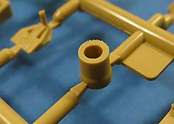 Das besagte Laufwerk ist da schon deutlich detaillierter. Einzelne Schwinarme, die in die vorgegebenen Öffnungen gesteckt und verklebt werden - ein bewegliches Laufwerk dürfte schwer realisierbar sein, wenn auch nicht unmöglich für pfiffige Modellbauer. Wer die Radstationen evtl. einem Dio-Untergrund anpassen will, kann den zweiten Lokalisierungsbolzen abkneifen und den Winkel des Schwingarms variieren.