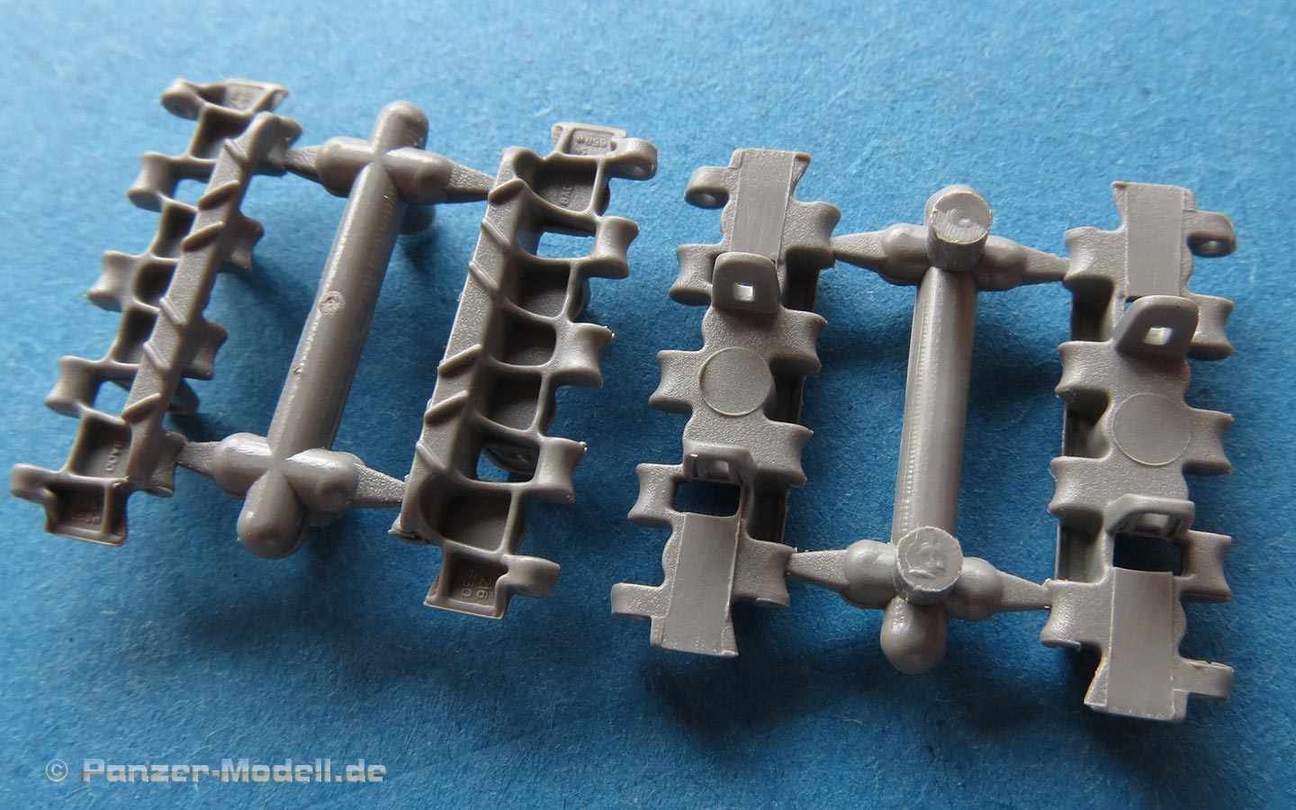 Sogar an den Einzelgliedketten hat Ryefield ultrafeine Gussnummern hineingezaubert, das ist wirklich sensationell. Leider kranken die Glieder auf der Innenseite mittig an Auswerferstellen - das ist schade, aber zu großen Teilen ist dieser Bereich später am Modell nicht zu sehen.