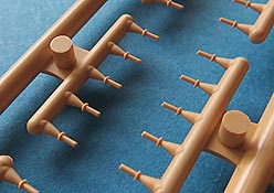 Die einzelnen Glieder sitzen erfreulicherweise an nur zwei Angüssen und damit schnell zu versäubern. Die Glieder werden immer zu sechst auf einer Bauhilfer zusammengelegt und mit kleinen Stiften zusammengesteckt. Einzeln sind diese ein Graus - zum Glück sind diese mit exakten Abständen im Sechserpack vorhanden, sodass man die Packs immer in einem Schwung komplett einstecken kann.