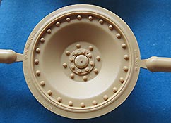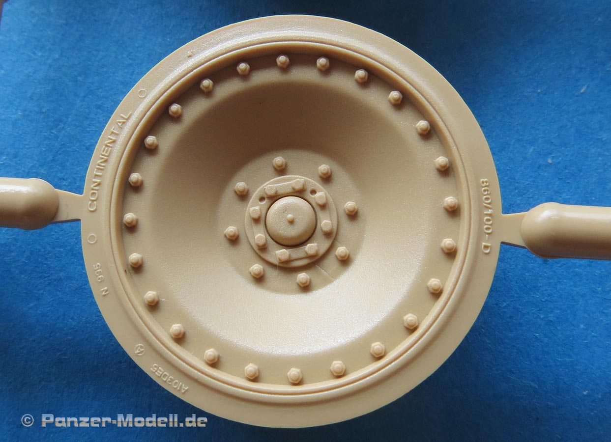Die Laufrollen haben eine hervorragende Qualität und Detaillierung mit den Wölbungen und vor allem den sehr fein und sauber gestalteten Radmuttern. Die Gummierung der "normalen" Laufrollen weit ebenfalls extrem feine und sensationell gemachte Herstelleraufdrucke, die ihresgleichen suchen. Nicht nur, weil der Herstellername unverfälscht aufgeprägt ist, sondern weil auch anderen Angaben mit dabei sind ... besser können Laufrollen eigentlich nicht mehr aussehen.