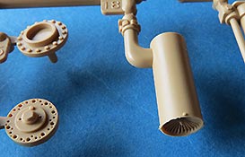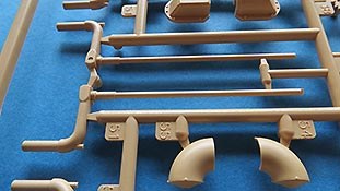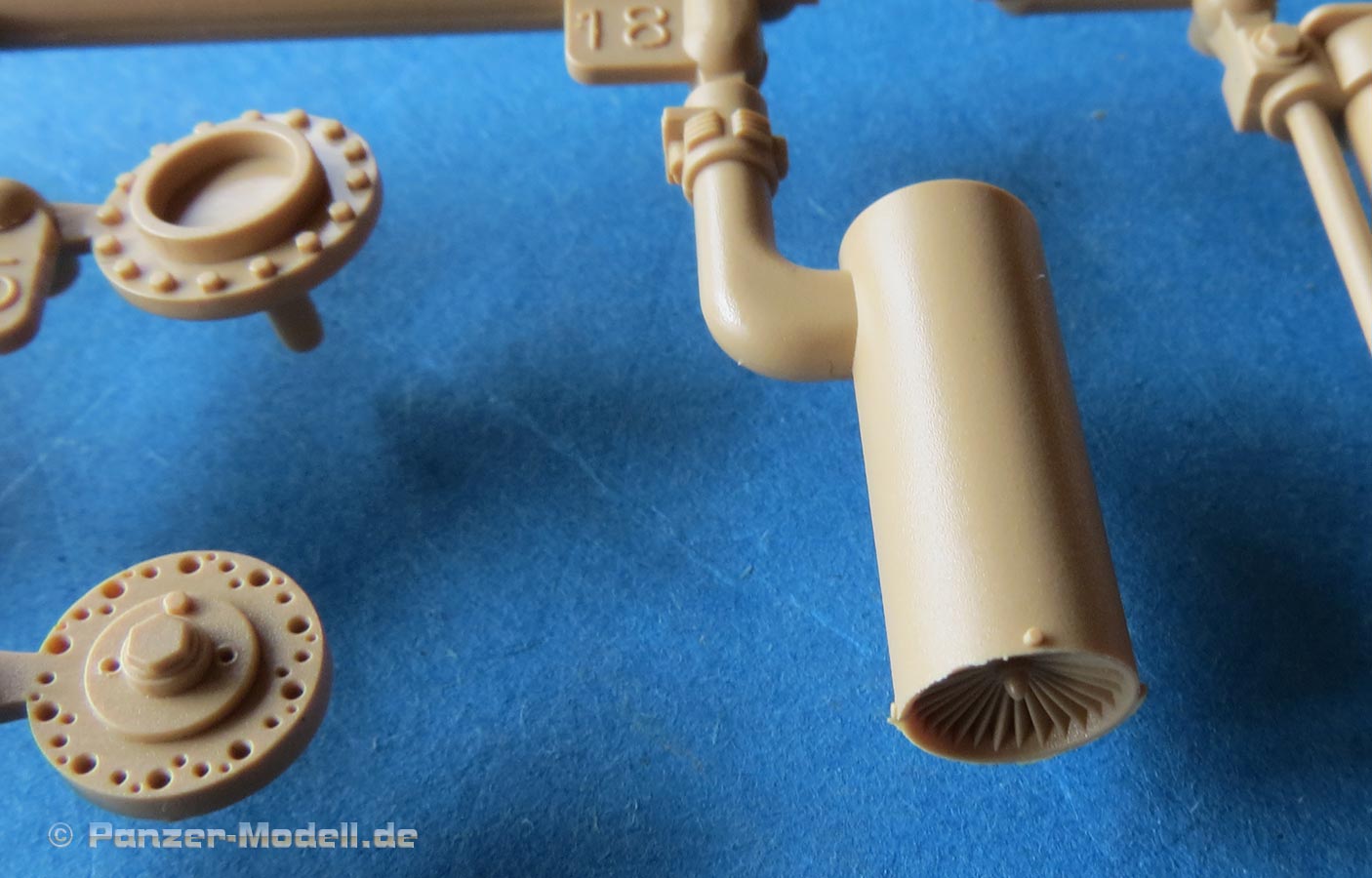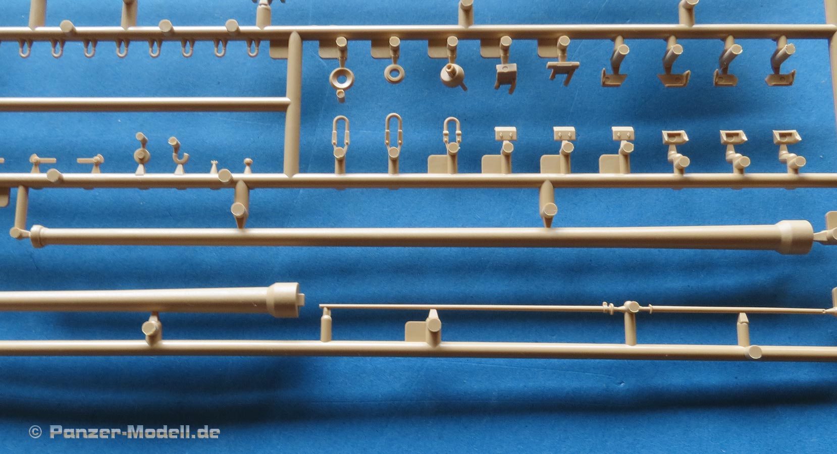 Beim Betrachten der Teile an den Spritzlingen muss man hier und da schon mit der Zunge schnalzen, denn die Detaillierung und Gussqualität ist wirklich ganz große Klasse. Gerade Teile, mit Gussstruktur sind wahnsinnig gut und realistisch gestaltet und haben teilweise sogar kleine, feine Gussnummern.
